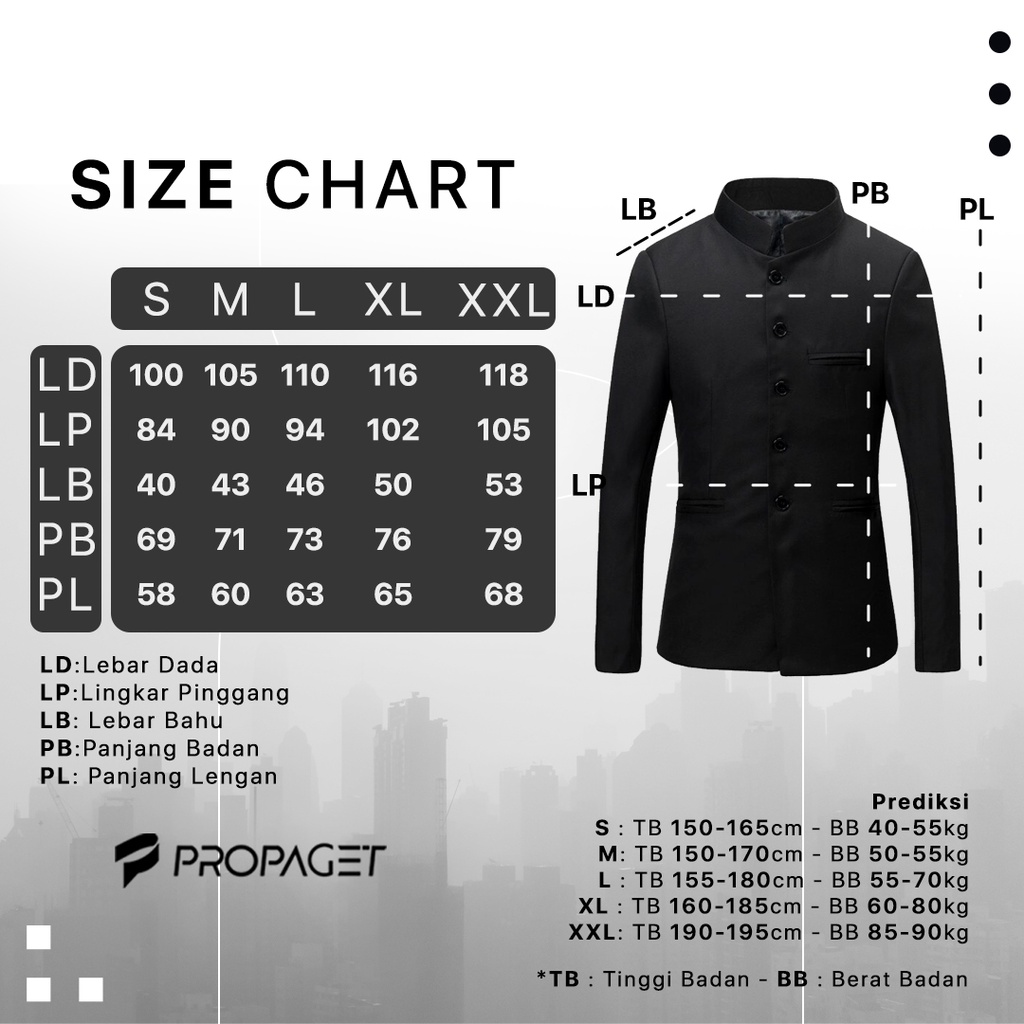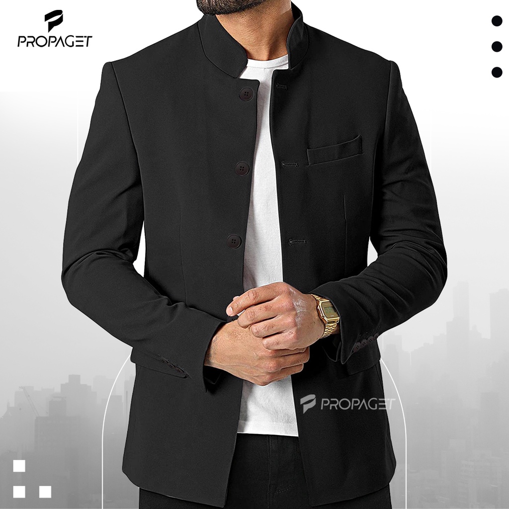 Propaget - Jas Mandarin Slimfit Jas Mandarin Casual Hitam Jas Pria Blazer Pria