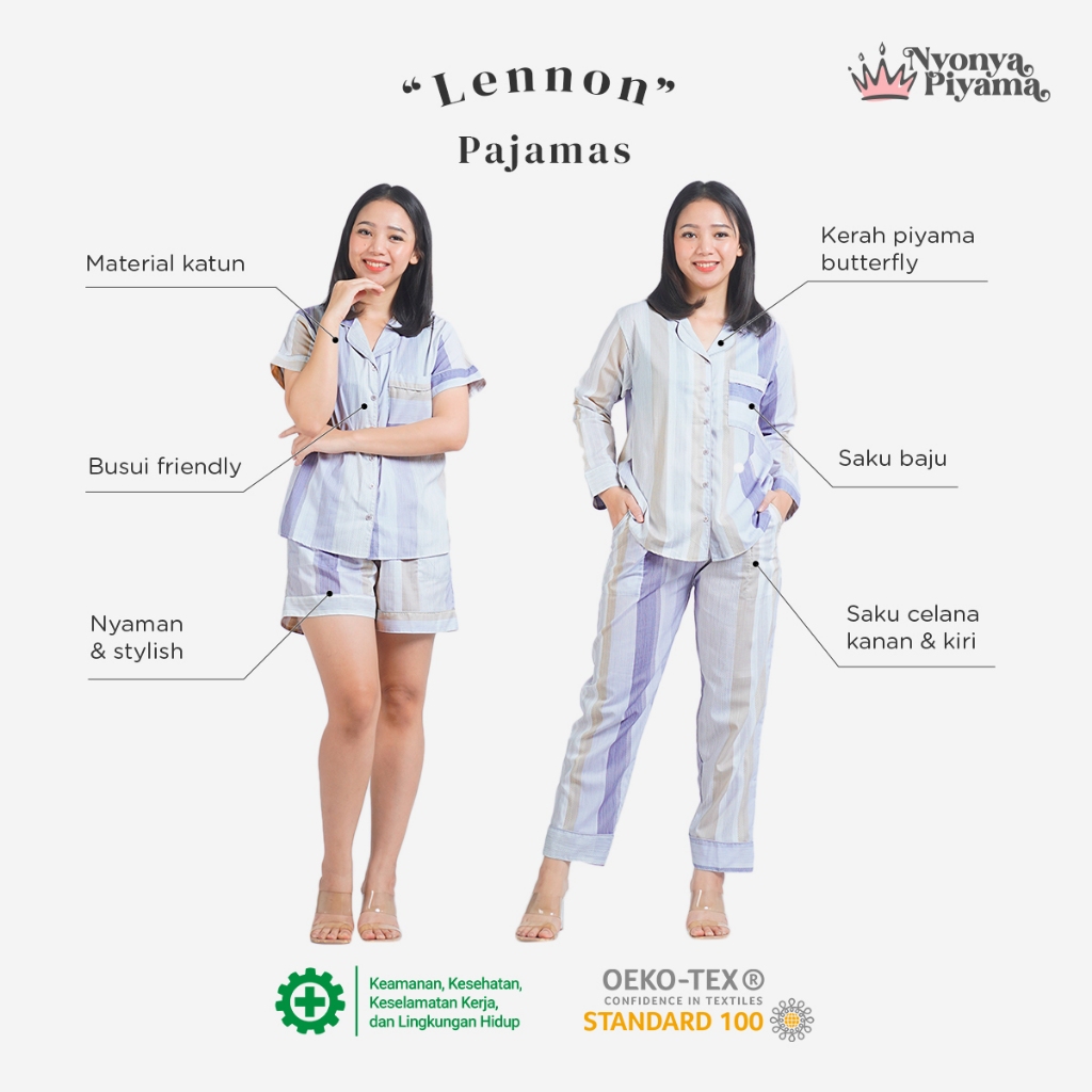 Nyonya Piyama Set Katun Classic Couple (Lennon)