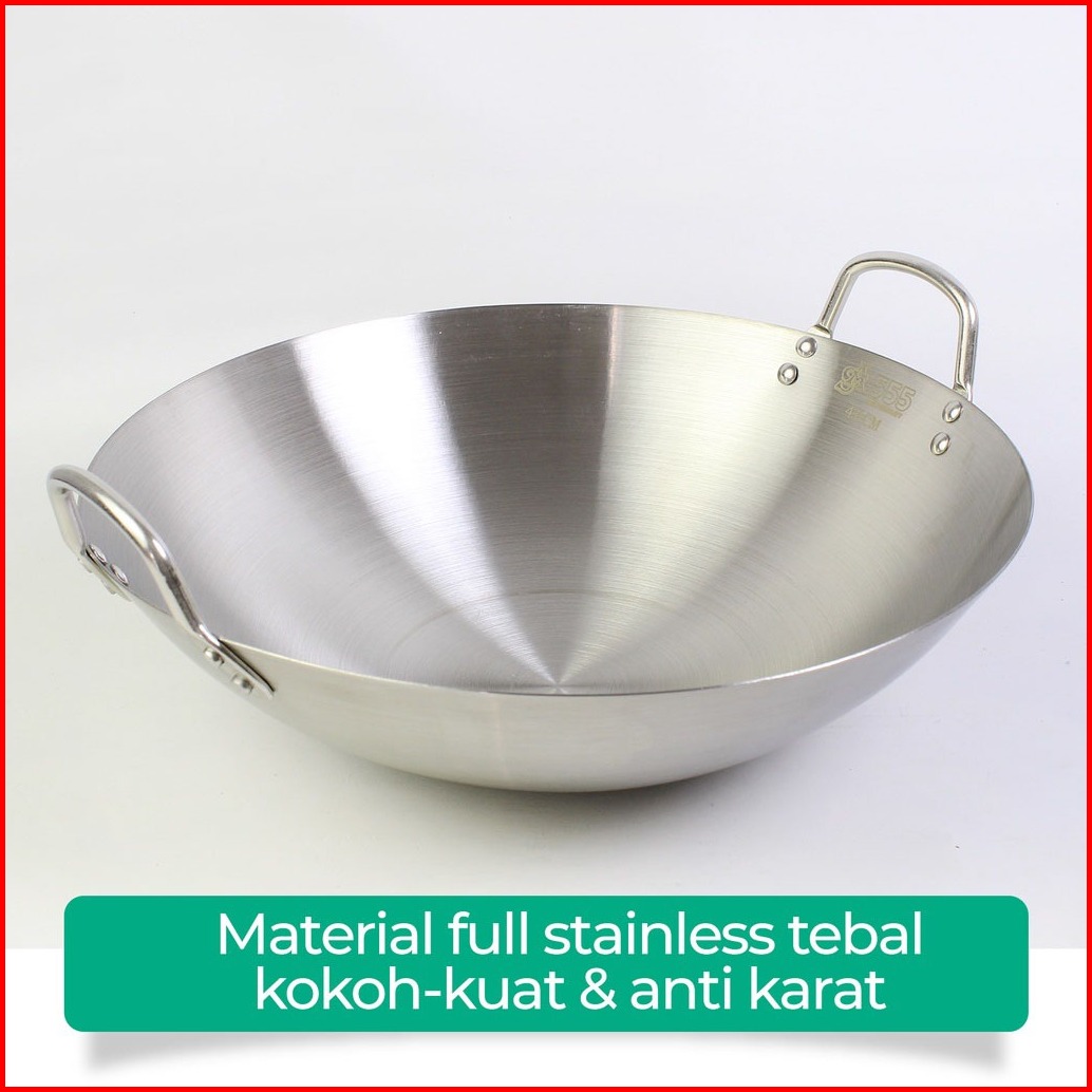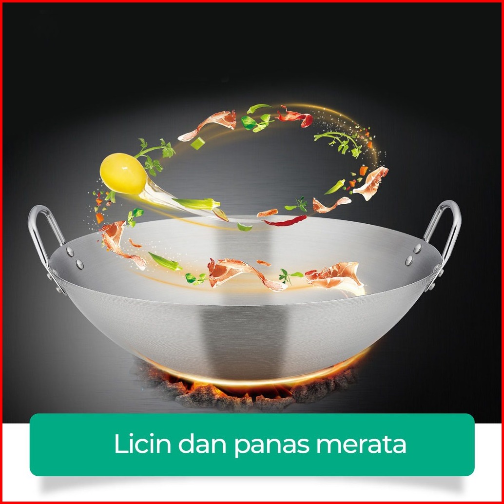 Qmebeli 2 Dapat 1wajan Stainless Tebal Ukuran 40cm 34cm Kualitas Premium Penggorengan Steel Kitchenware