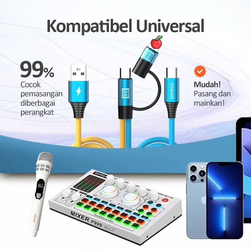 Bonkyo F999MAX +Headset+2 in 1 OTG cable New upgraded metal material F999MAX Sound Card Bluetooth Live SoundCard F999MAX