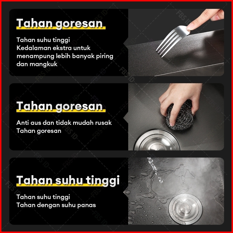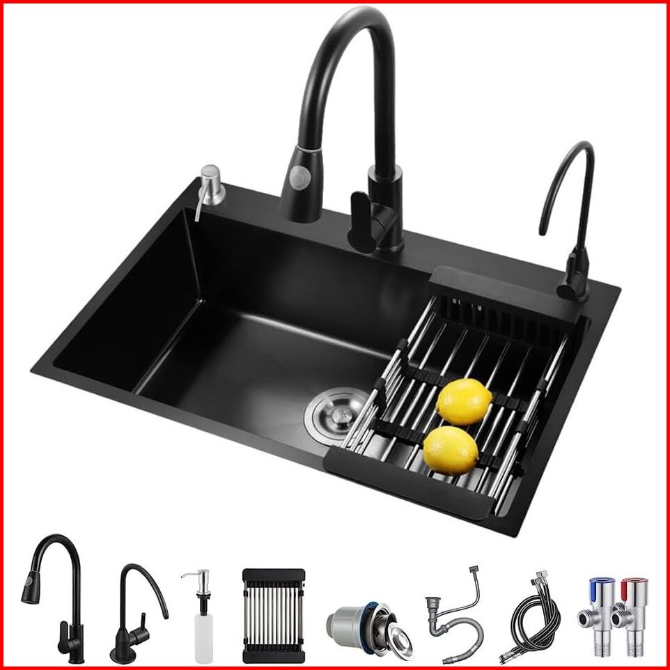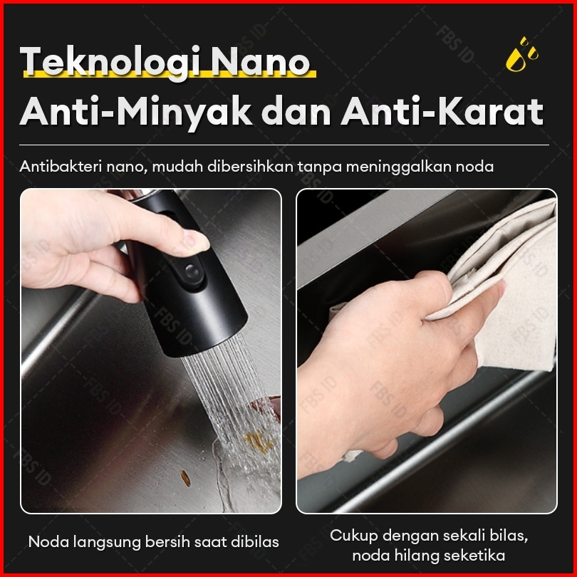 Reaim - Paket Kitchen Sink Hitam Kran Wastafel Cuci Piring Stainless Sink Cuci Piring Dengan Keran Tarik Cuci Piring Ket