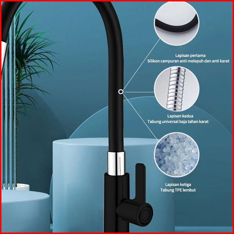 Sus 304 Kran Angsa Tembok Fleksibel Kran Cuci Piring Hitam Kran Angsa Kran Dapur Kran Wastafel 2 Model