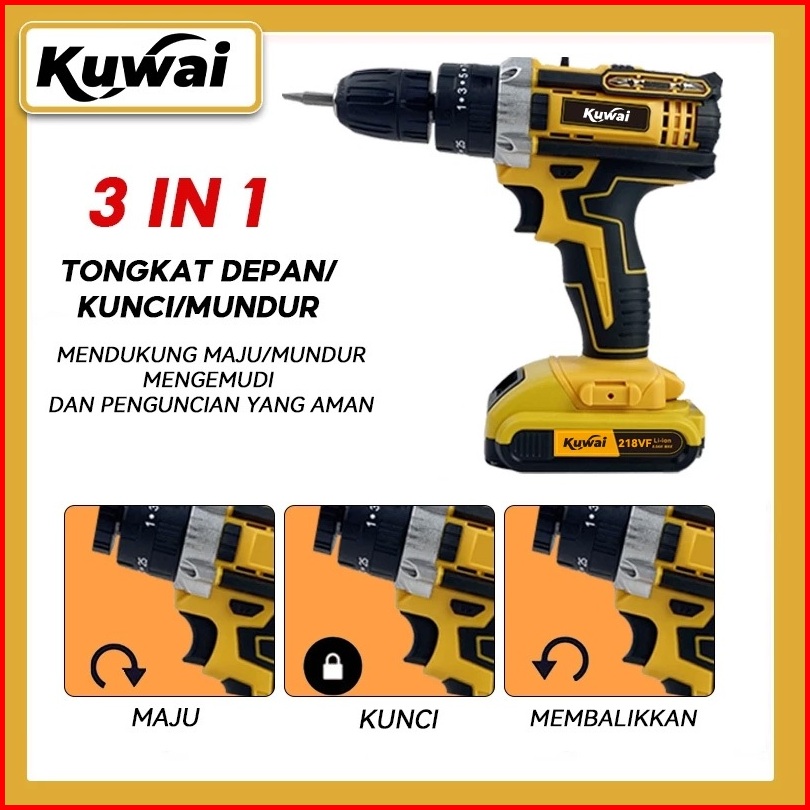 3batera 218vf Mesin Bor Impact Drill Tanpa Kabel Bor Tanpa Kabel Bor Listrik Bor Tangan Listrik