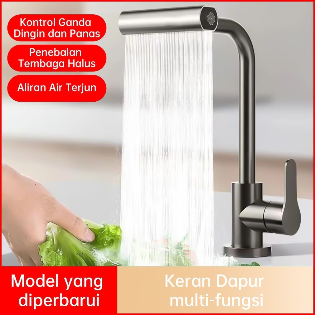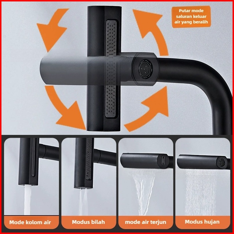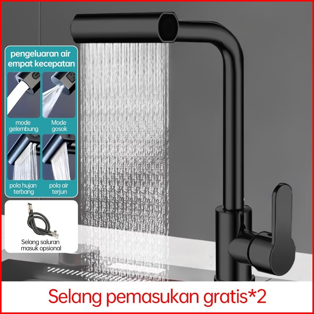 Kran Cuci Piring Kran Angsa Fleksibel Kran Wastafel Keran Air Terjun 4 Mode Kran Shower 1 2inch