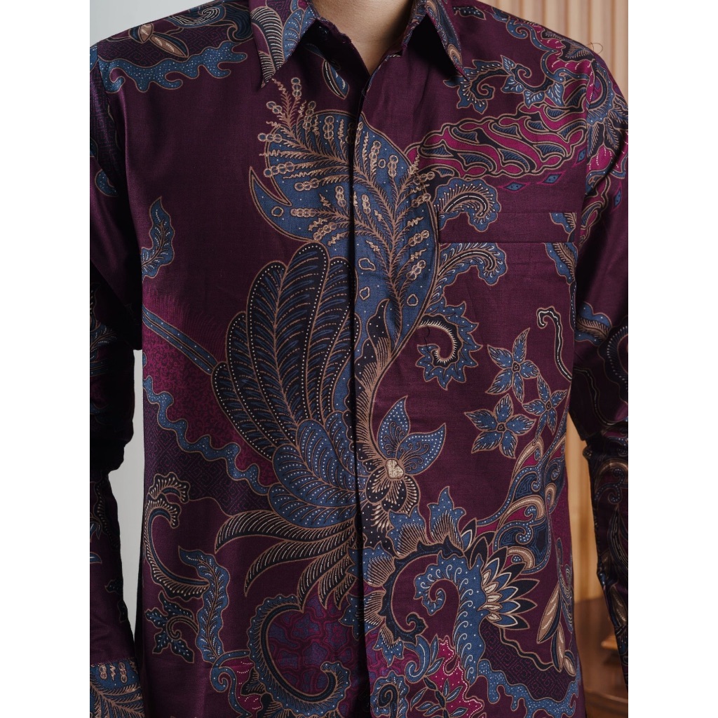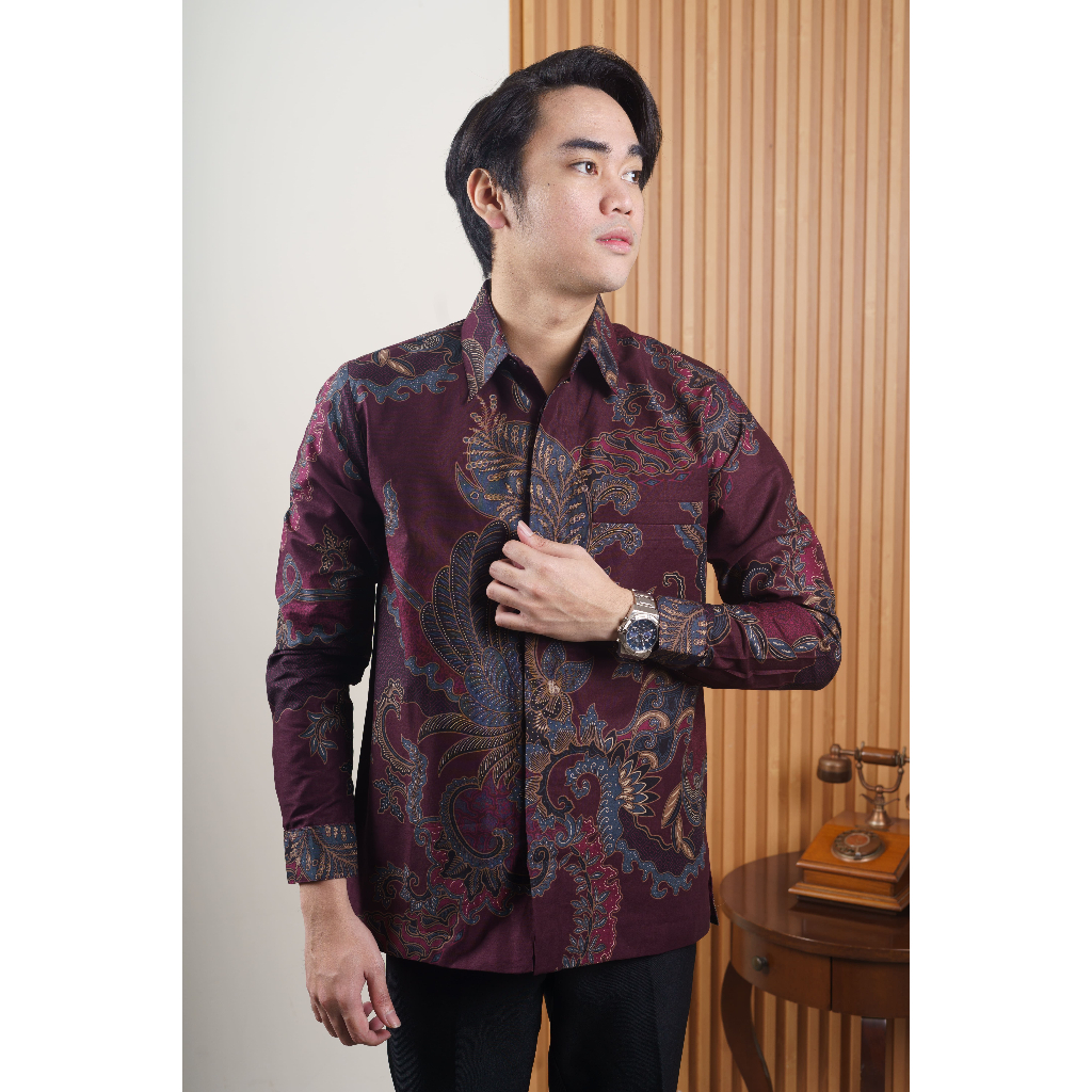 Batik Ayman - GALA MAROON BURGUNDY LENGAN PANJANG | Kemeja Batik Pria Katun Solo Halus Mewah Premium