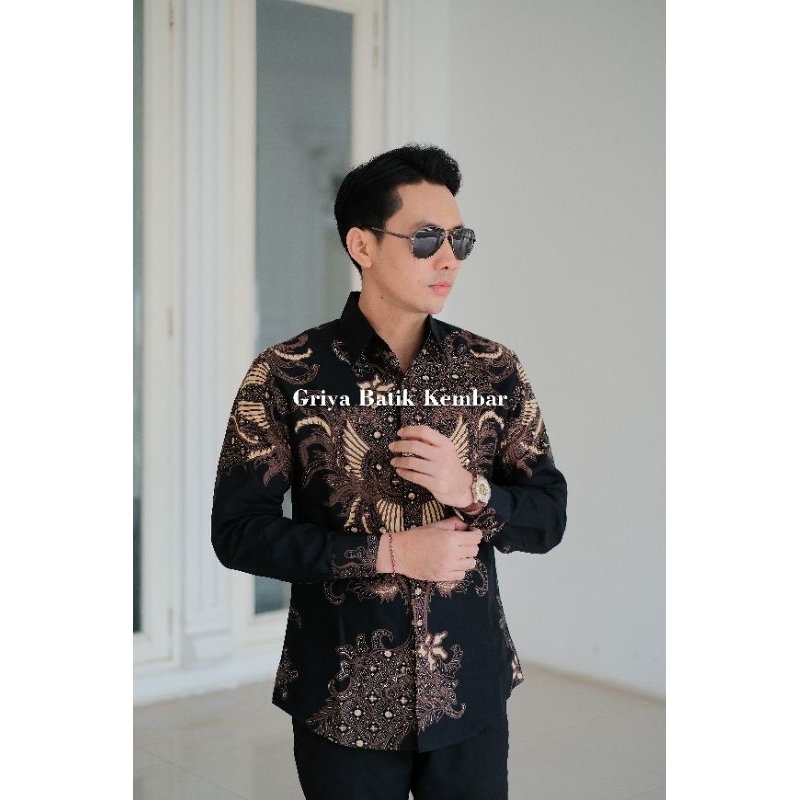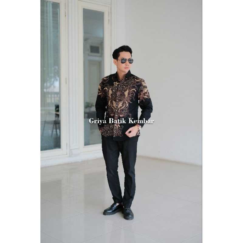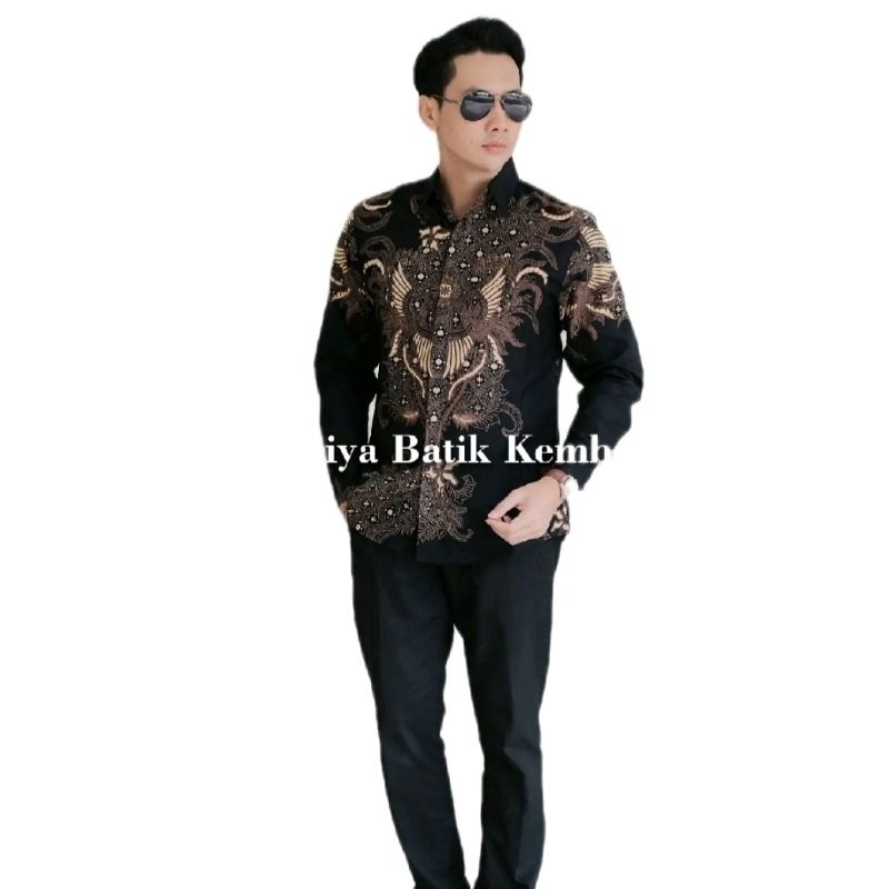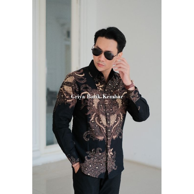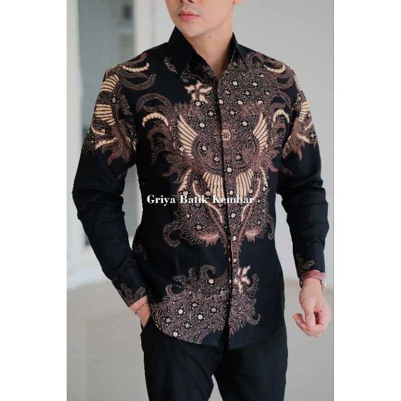 Baju Batik Pria Slimfit Lengan Panjang Motif Kencono Hitam Kain Katun Printing Lapisan Furing Nyaman dan Lembut tersedia Size S..M..L..XL..L3(XXL)..L4(XXXL)..L5(XXXXL)