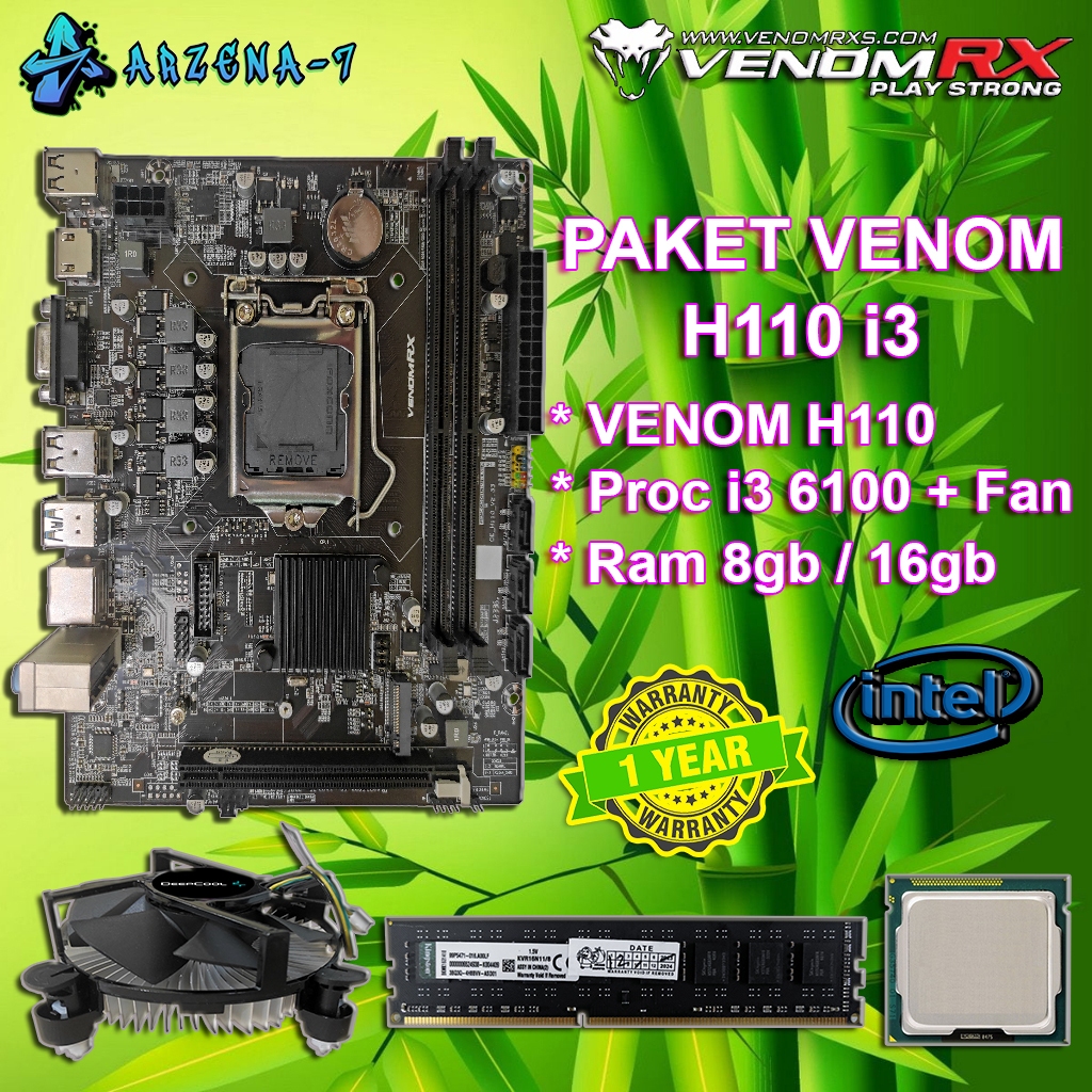Promo Murah Paket Core i3 Gen 6 ( Motherboard H110 VenomRx + Proc core i3 6100 + Ram 8Gb - 16Gb )