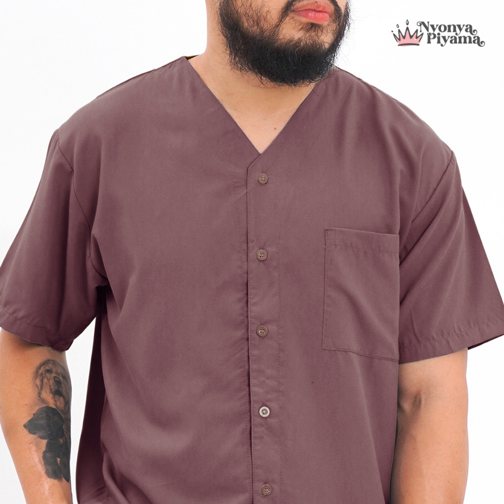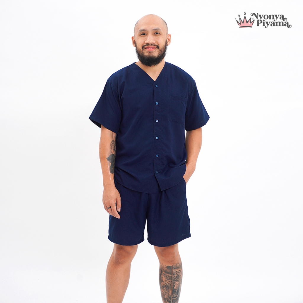 [BEST SELLER] Nyonya Piyama Poly Bamboo Oversized Cozy Set Celana Pendek Polos Pria