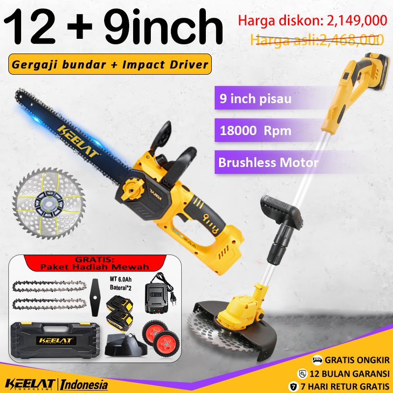 Mesin Chainsaw 12 Inch + Mesin Potong Rumput 9 Inch | Brushless Motor | Baterai LXT 20V | Gergaji & Babat Rumput