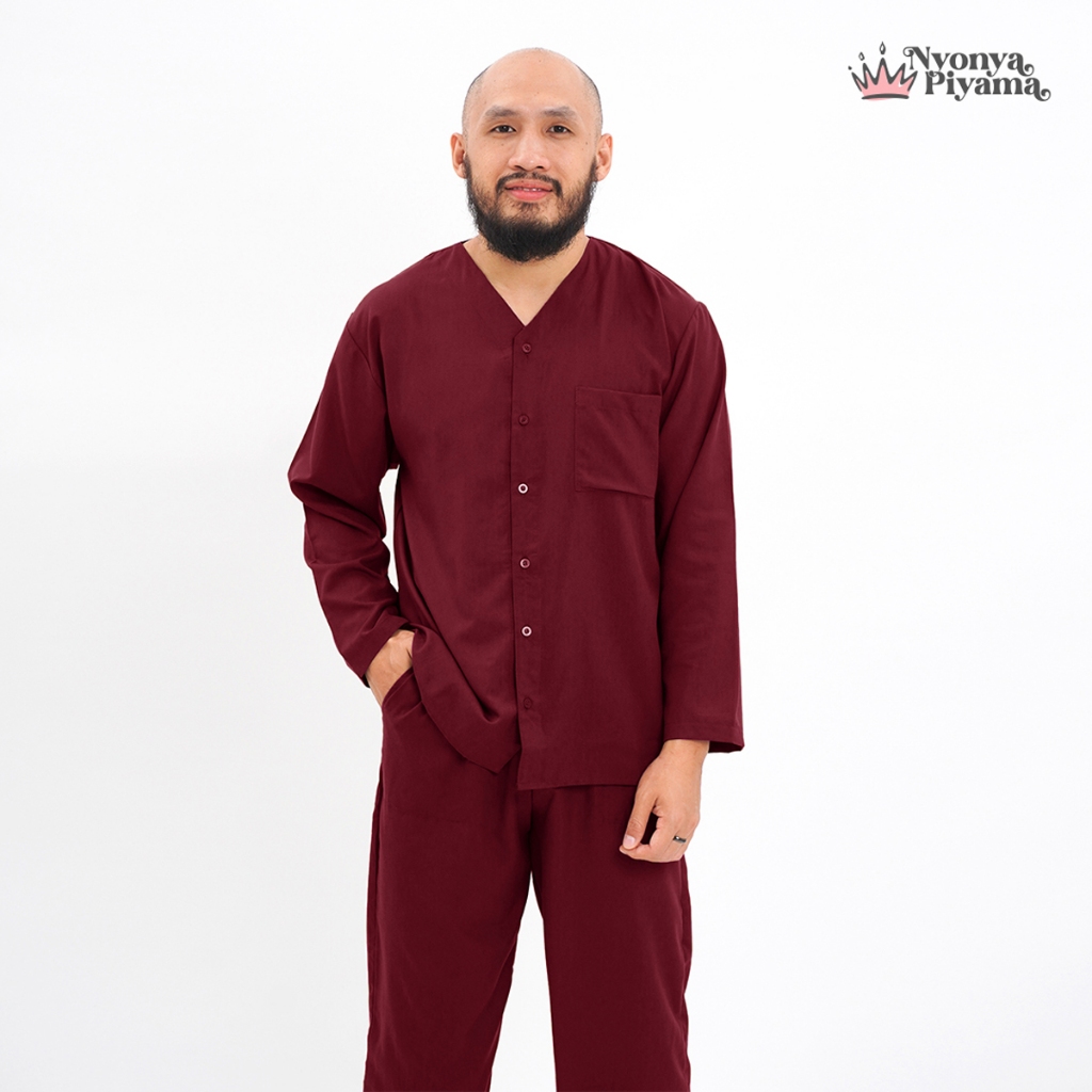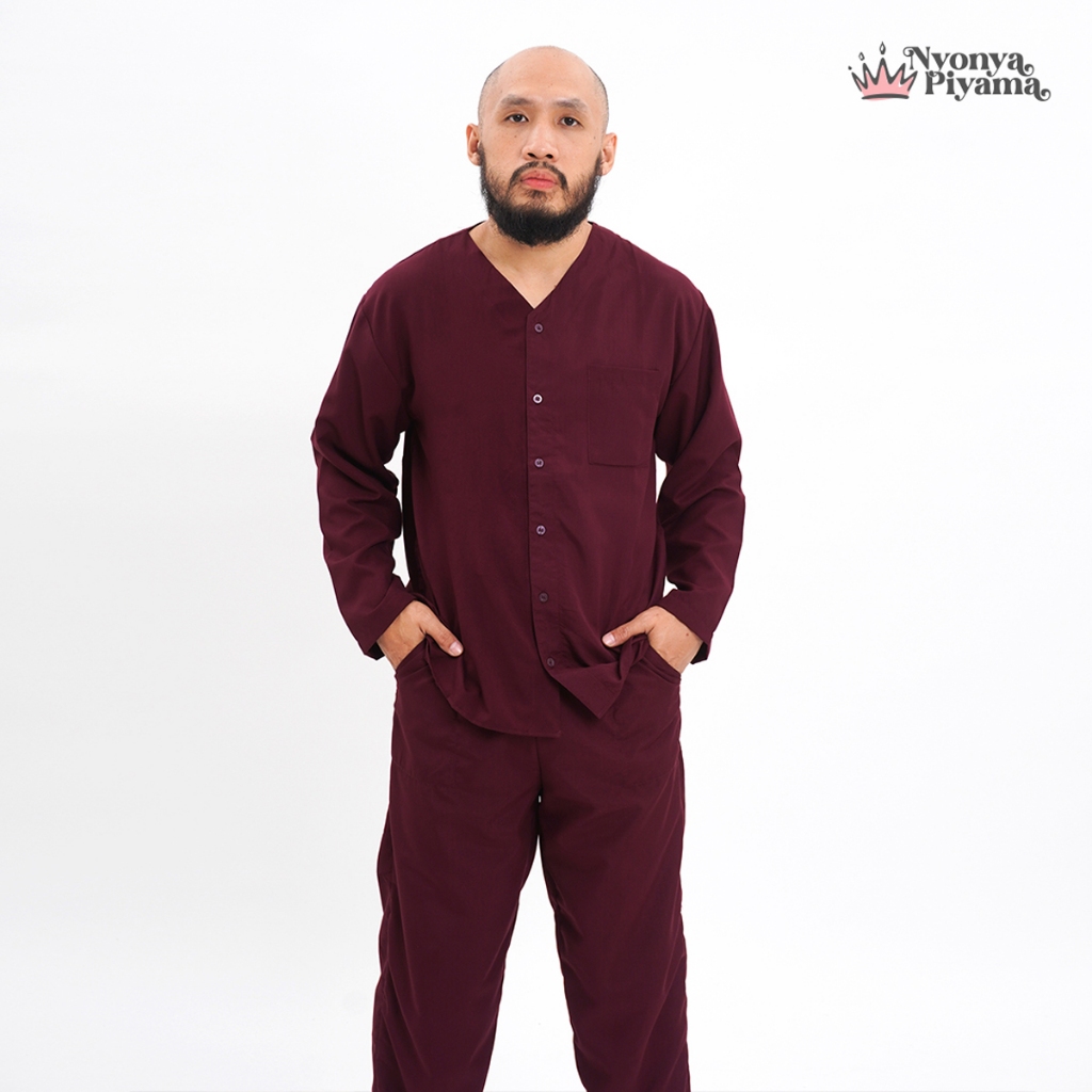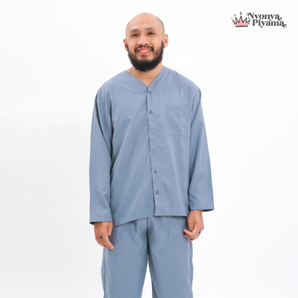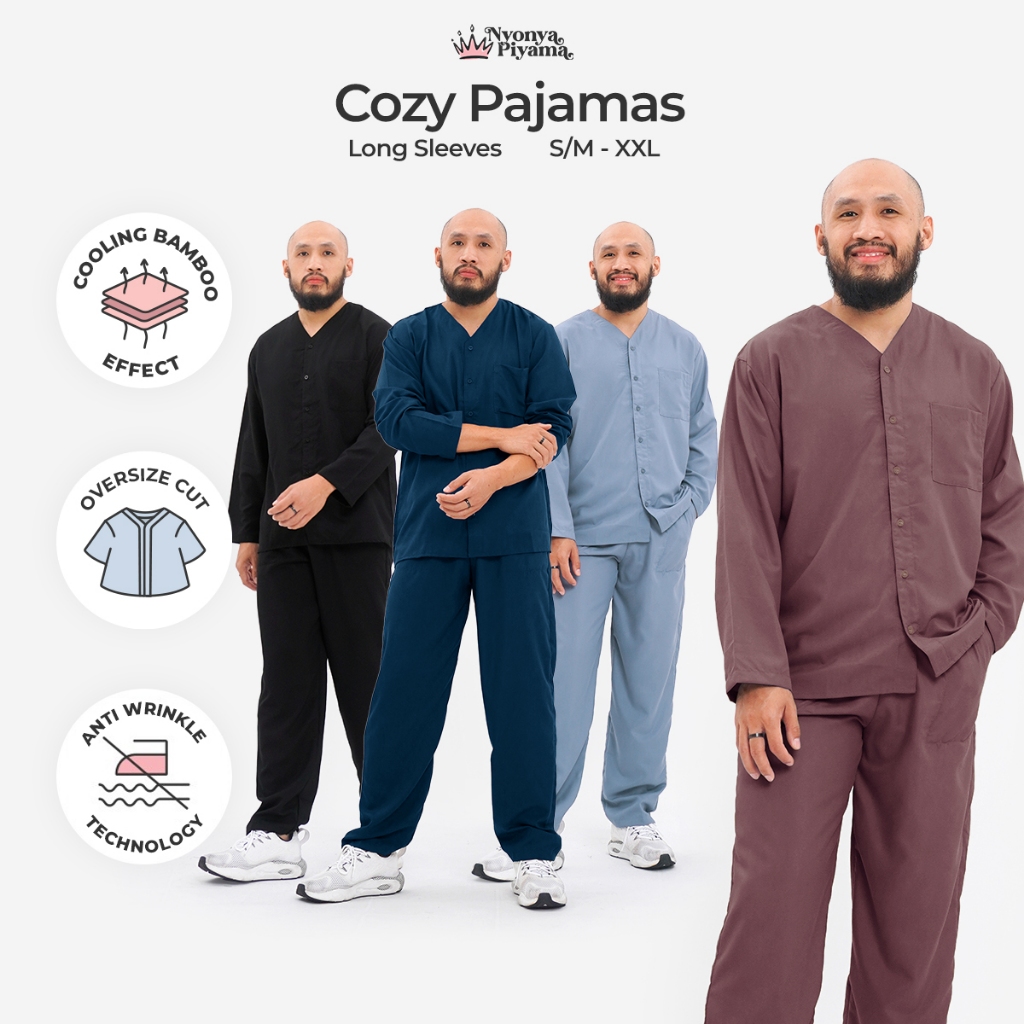 [BEST SELLER] Nyonya Piyama Poly Bamboo Oversized Cozy Set Lengan Panjang Polos Pria