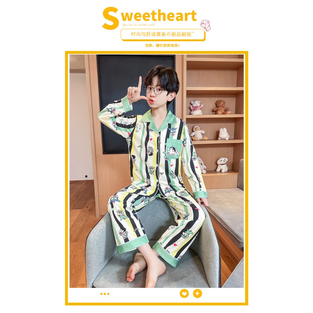SHIN SETELAN PAJAMAS ANAK COWOK DAN DEWASA LENGAN PANJANG CELANA PANJANG KATUN PREMIUM