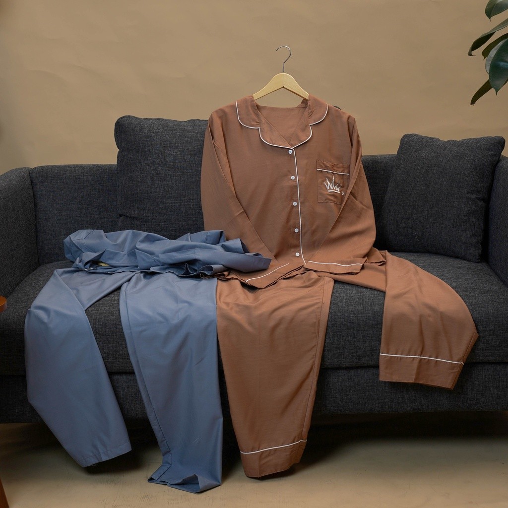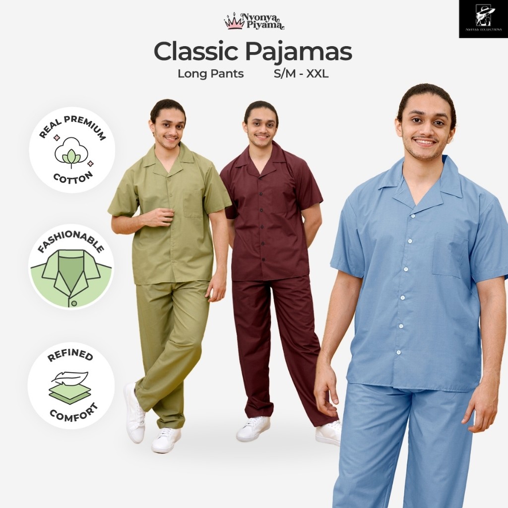 [BEST SELLER] Nyonya Piyama Katun Classic Signature Set Celana Panjang Polos Pria