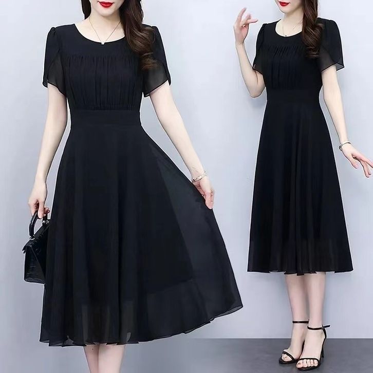 Murah FANMU Dress sifon hitam/dress ala korea ukuran besar Elegan