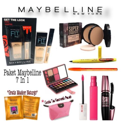 Paket Make Up Lengkap 7 In 1 Free masker & Tas / Maybel/ Make Up / Paket Make Up