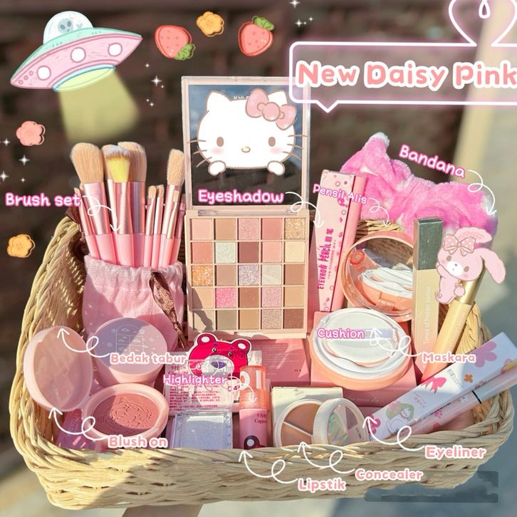 Paket Makeup kosmetik Daisy Pink isi 12 Hampers seserahan kado wanita Snowice.id