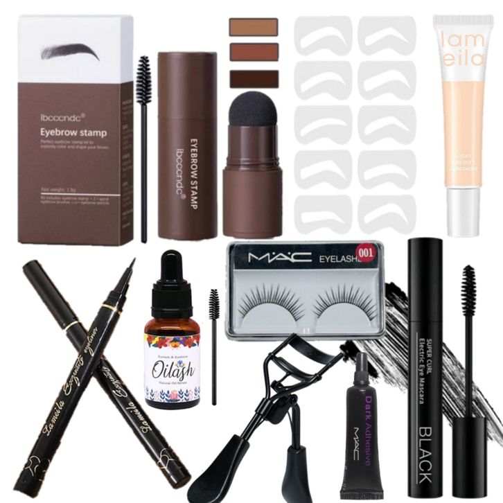 PAKET KOSMETIK 1 SET KECANTIKAN MATA EYEBROW POWDER STAMP INSTAN + SERUM PENUMBUH BULU MATA TEBAL /