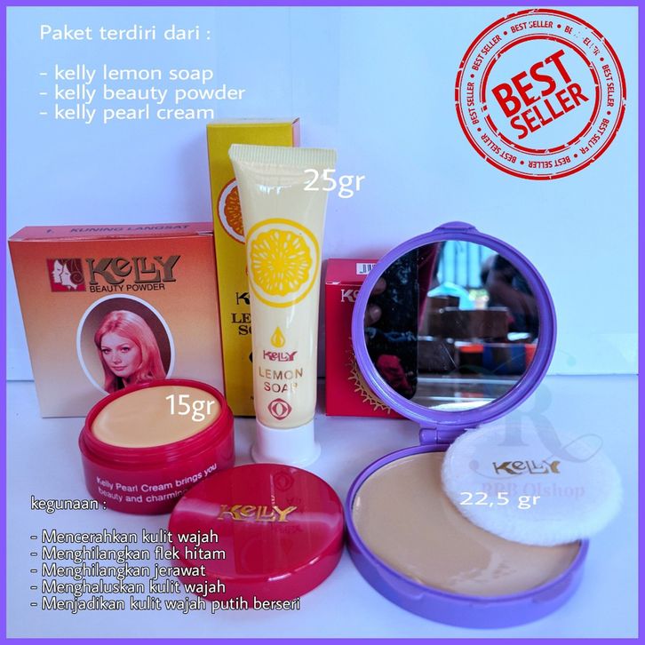 MURAH BPOM - Paket 3 IN 1 Kelly Kosmetik - Cream 15gr - Kelly Powder 22,5gr - Kelly Lemon 25gr