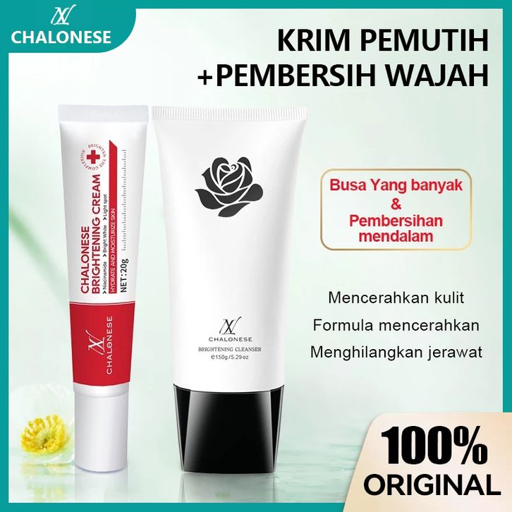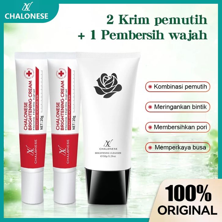 CHALONESE Paket Glowing Skincare Whitening Series Brhtening Cream + Facial Cleaner + Whitening Toner
