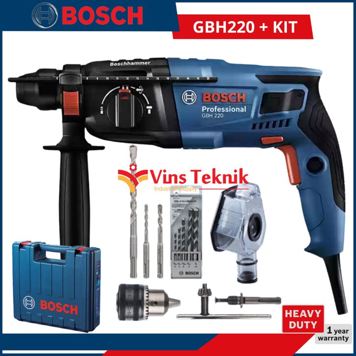 Murah Mesin Bor Beton Bosch GBH220 KIT SDS Plus Rotary Hammer 22mm GBH 220 Elegan