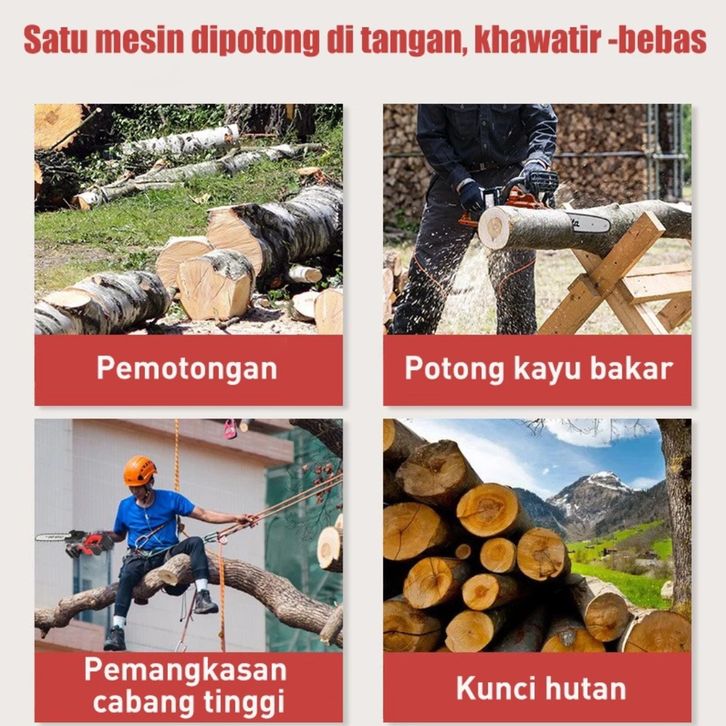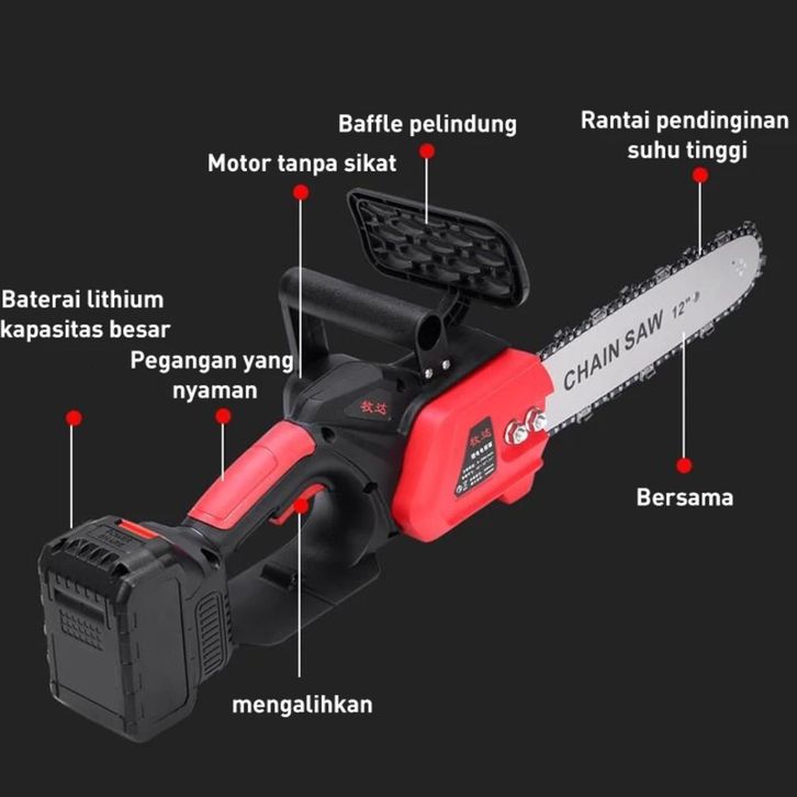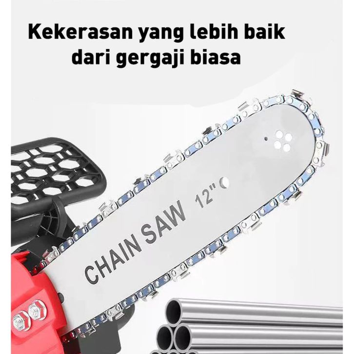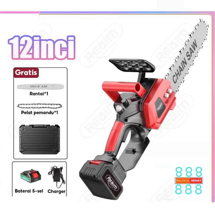 Terlaris Reaim Chainsaw Gergaji Rantai Elektrik 1 Baterai 599V - Cordless Gergaji Pemotong Kayu Mini 12 Inch Keren