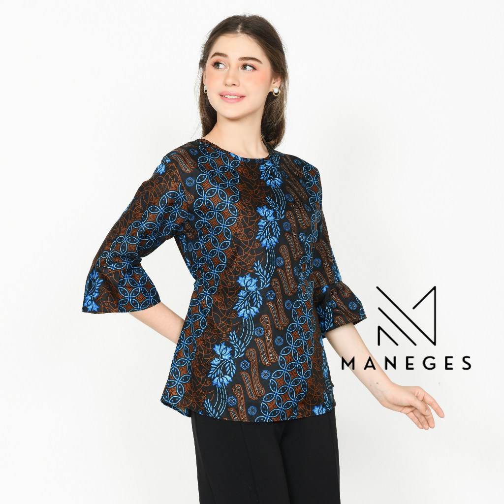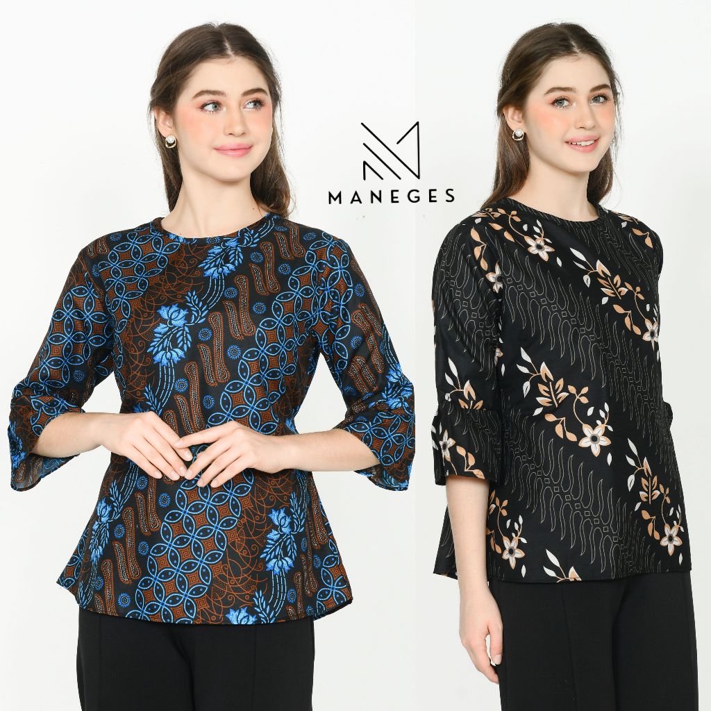 Atasan Batik Kerja Wanita Modern || Blouse Seragam Kantor Murah || Batik Kerja Wanita || Blouse Batik Lengan Lonceng 3/4