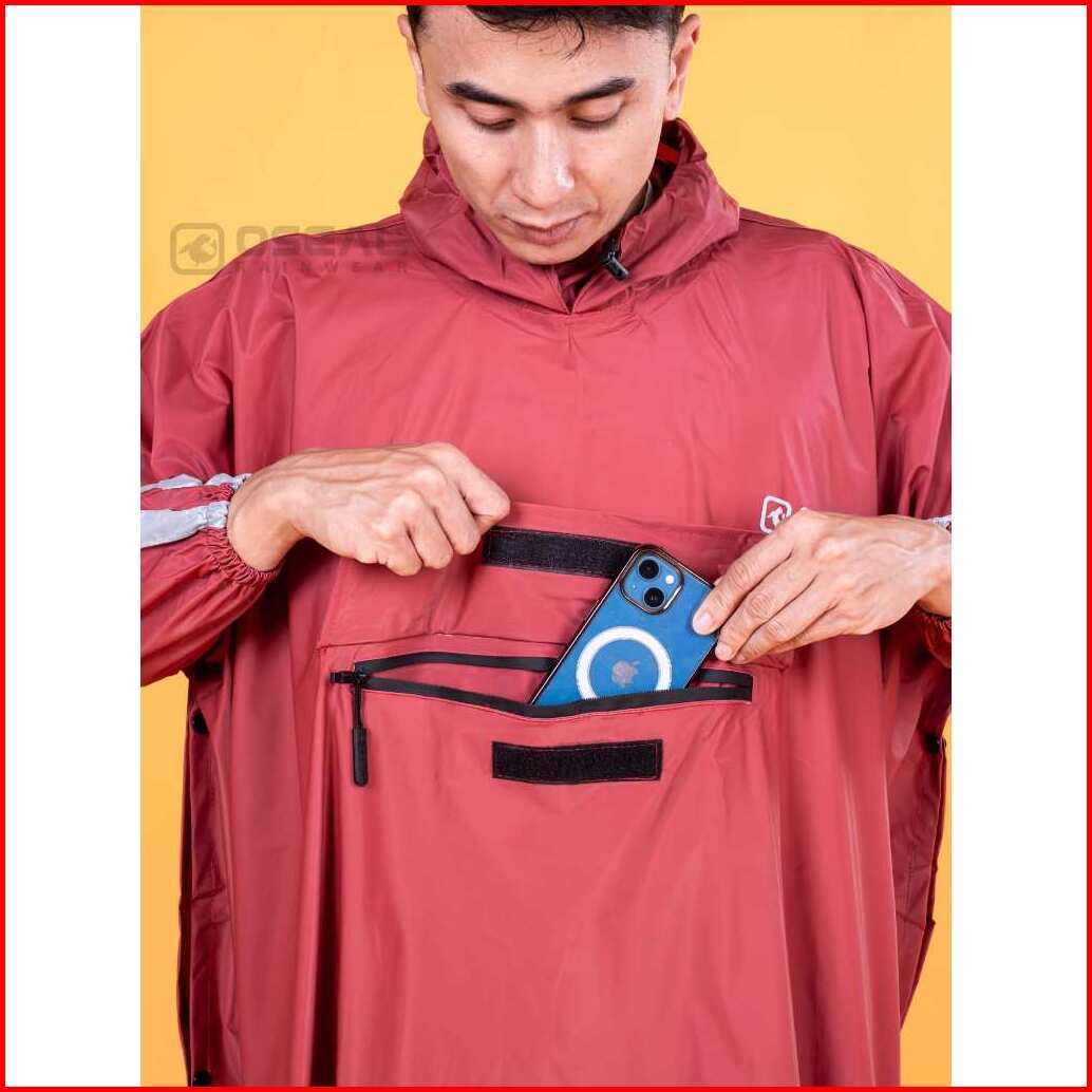 Oseal Jas Hujan Ponco Kelelawar Jumbo Pria Wanita Dewasa Full Seal Noctula Series Merah