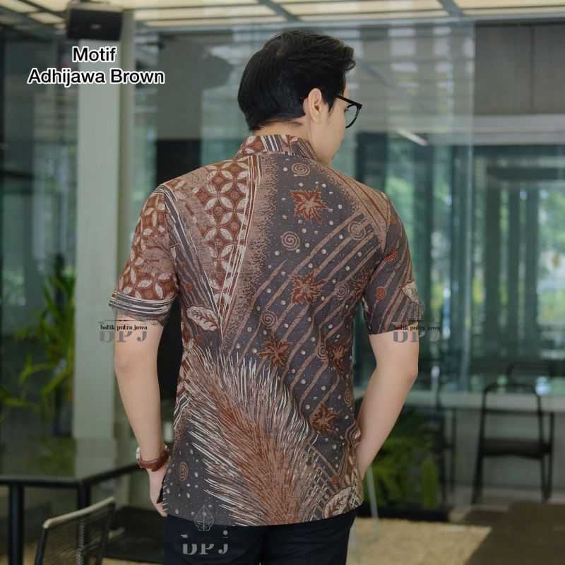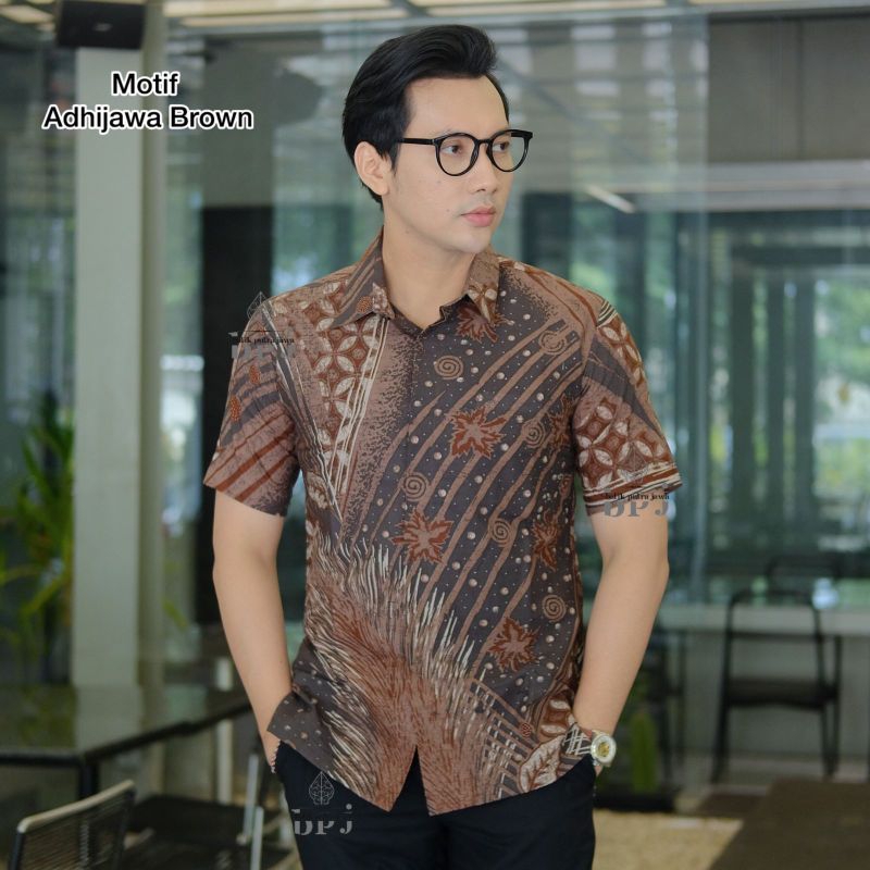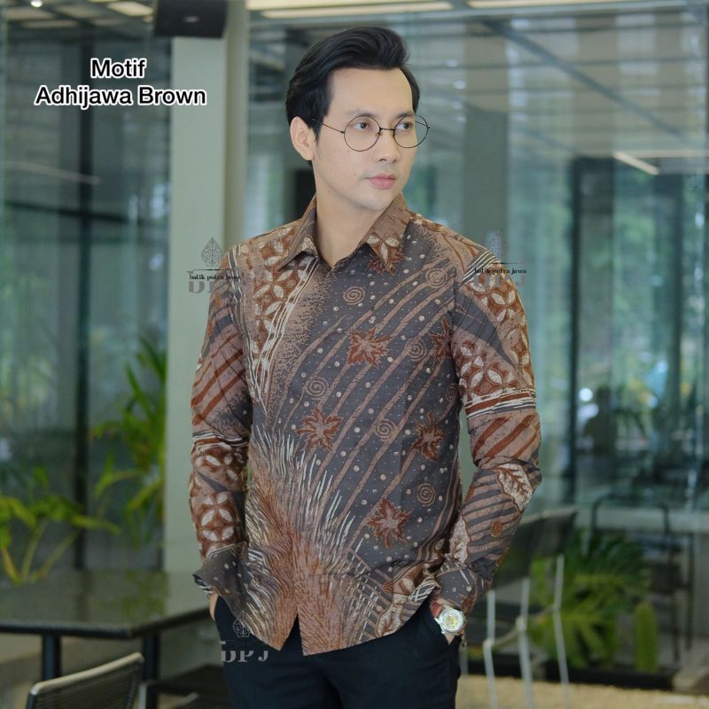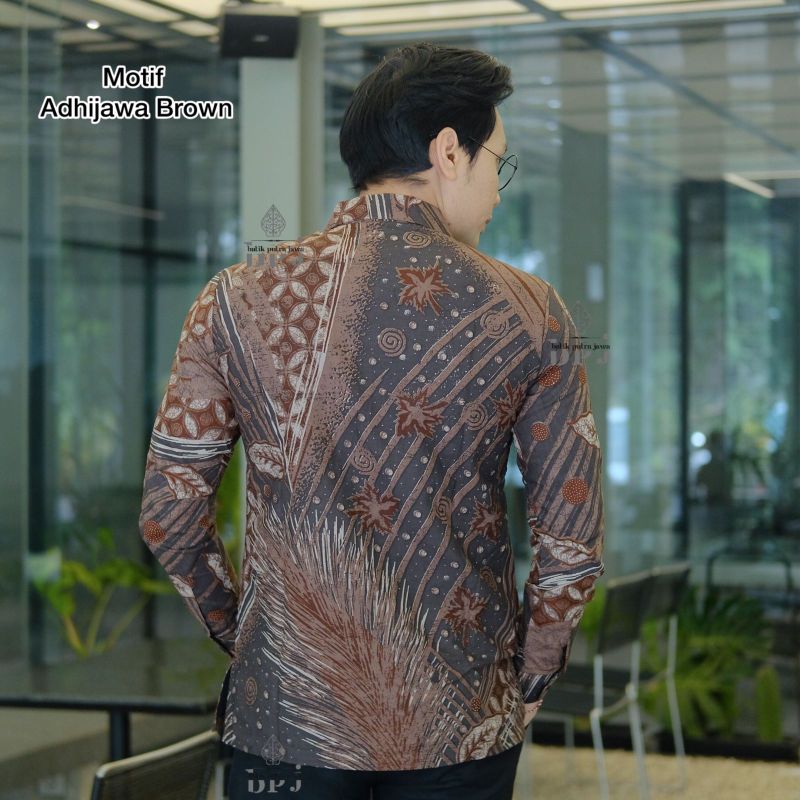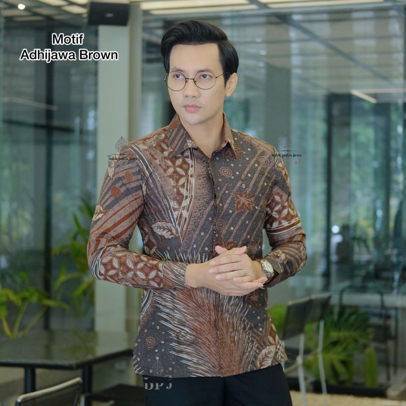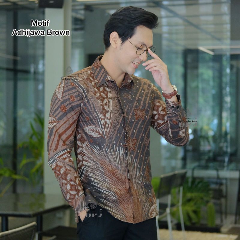Kemeja Batik Pria Motif ADHIJAWA BROWN Slimfit Kemeja Batik Pria Modern Lengan Panjang Pria