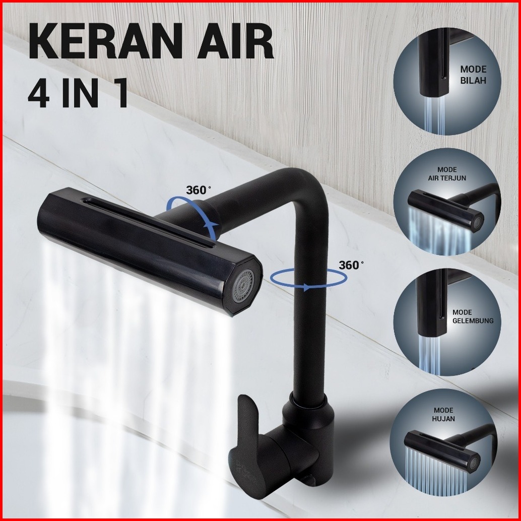 Kran Cuci Piring Kran Angsa Fleksibel Kran Wastafel Keran Air Terjun 4 Mode Kran Shower 1 2inch005