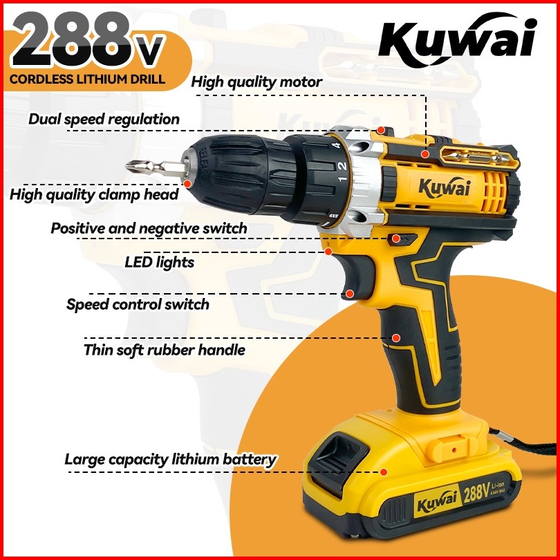288vf Mesin Bor Impact Drill Tanpa Kabel Bor Tanpa Kabel Bor Listrik Bor Tangan Listrik