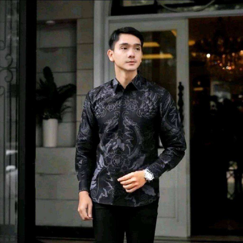 Kemeja Batik Atasan Pria Lengan Panjang Batik Seragaman Kerja Motif PUSAKA cocok dipakai segala acara