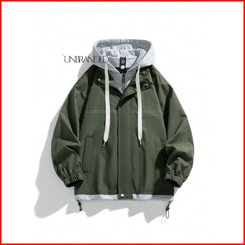 Unbranded Vintage Jacket Hoodie Double Zipper Army