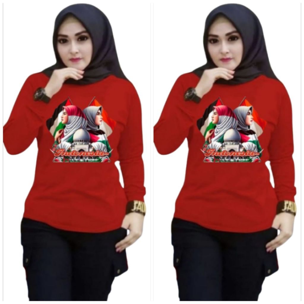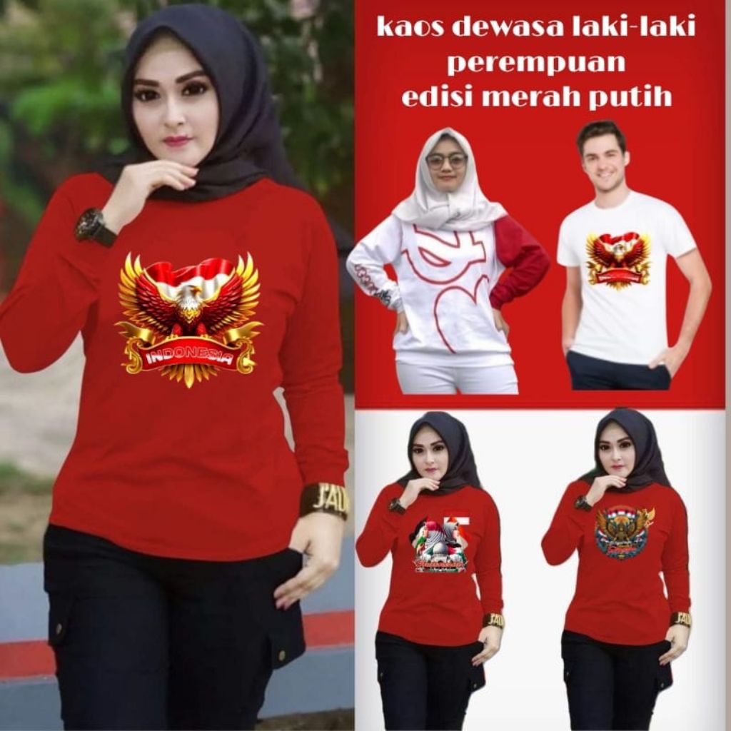 kaos dewasa merah putih kaos perempuan tangan panjang gambar garuda republic indonesia dalam rangka 17 agustusan ediputi