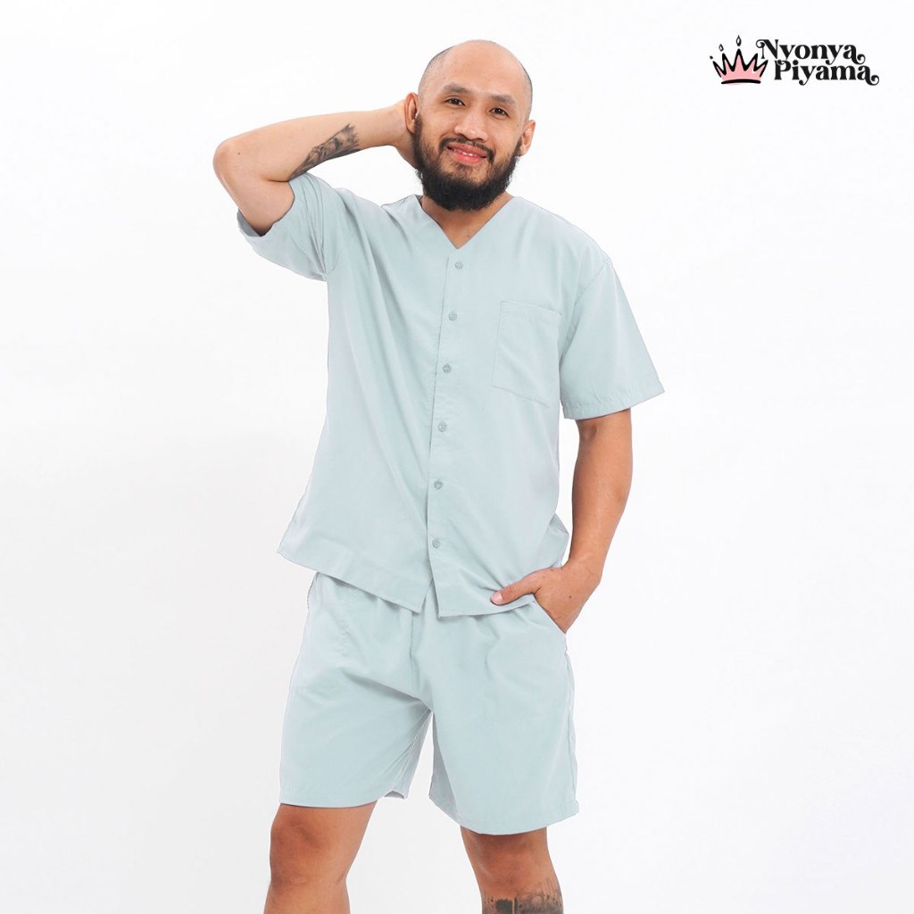 [BEST SELLER] Nyonya Piyama Poly Bamboo Oversized Cozy Set Couple Polos (Oceanaire Cozy)