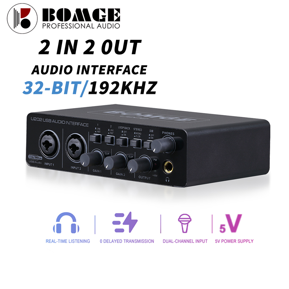 BOMGE Audio Interface U202 SoundCard with Mic Preamplifier Soundcard USB XLR/TSR/TS Ports,48V,32-Bit/192kHz Resolution f