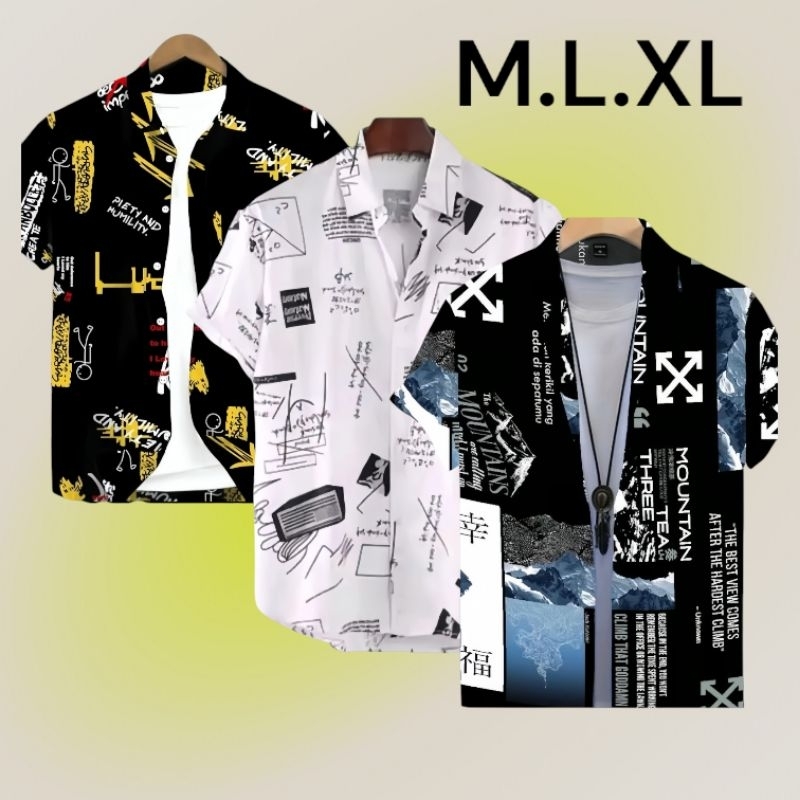 SPESIAL PROMO CUMA 70RB DAPAT 3 KEMEJA Motif Distro Surfing Baju Dewasa Pria Pendek Pantai Daun Santai Panjang Hem kemeja pria Slimfit Kain Katun rapi y Casual Kaos Formal