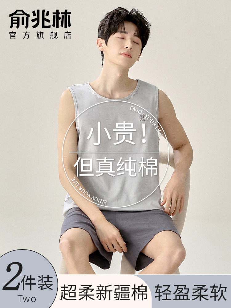 Piyama Katun Murni Rompi 2025 Set Rumah Musim Panas Tanpa Lengan Pria Cocok untuk Pakaian Luar Ruangan