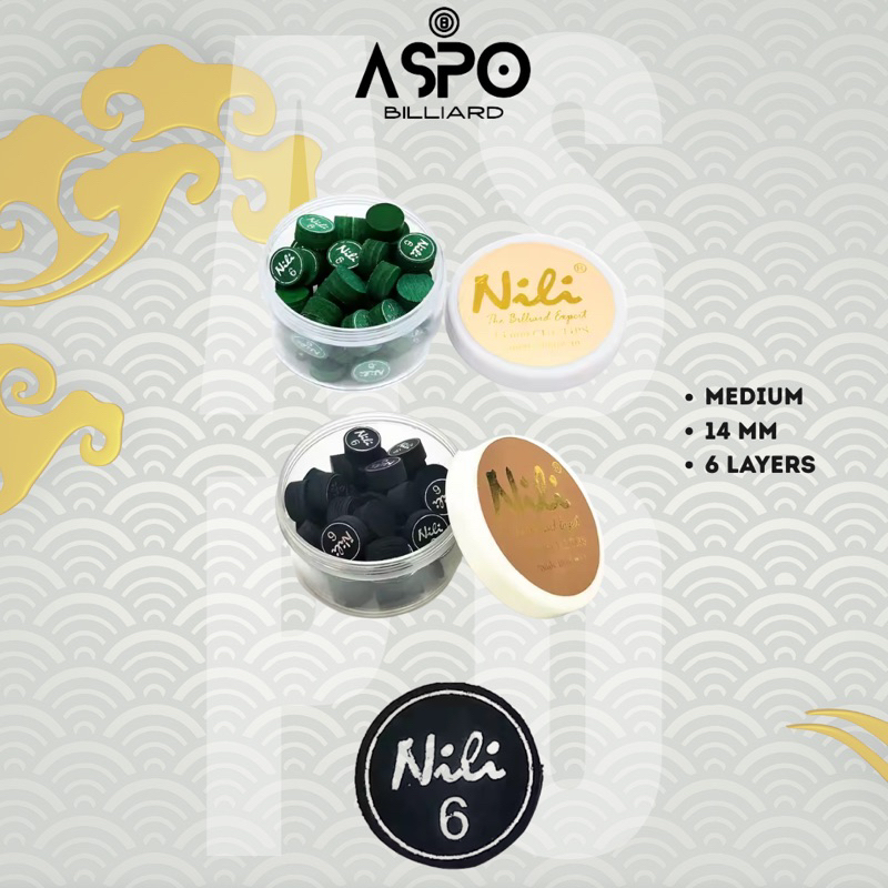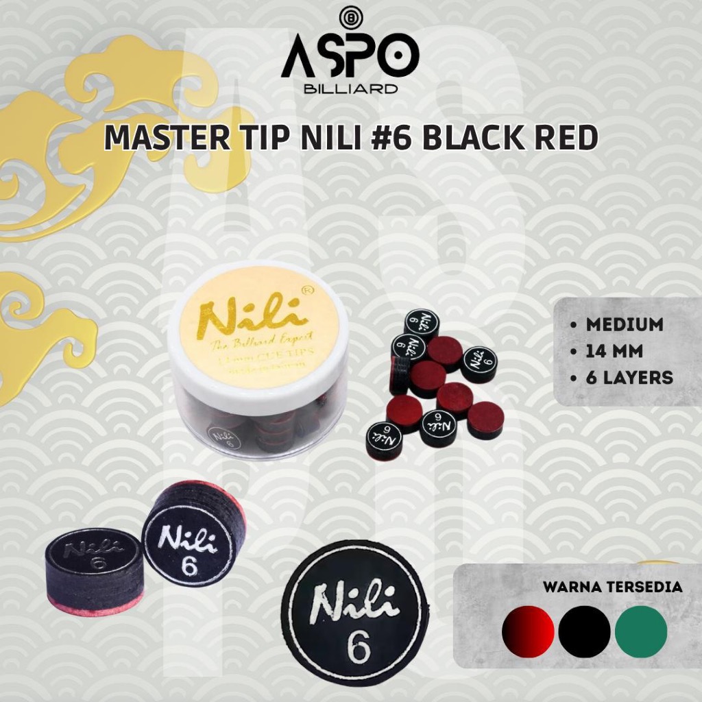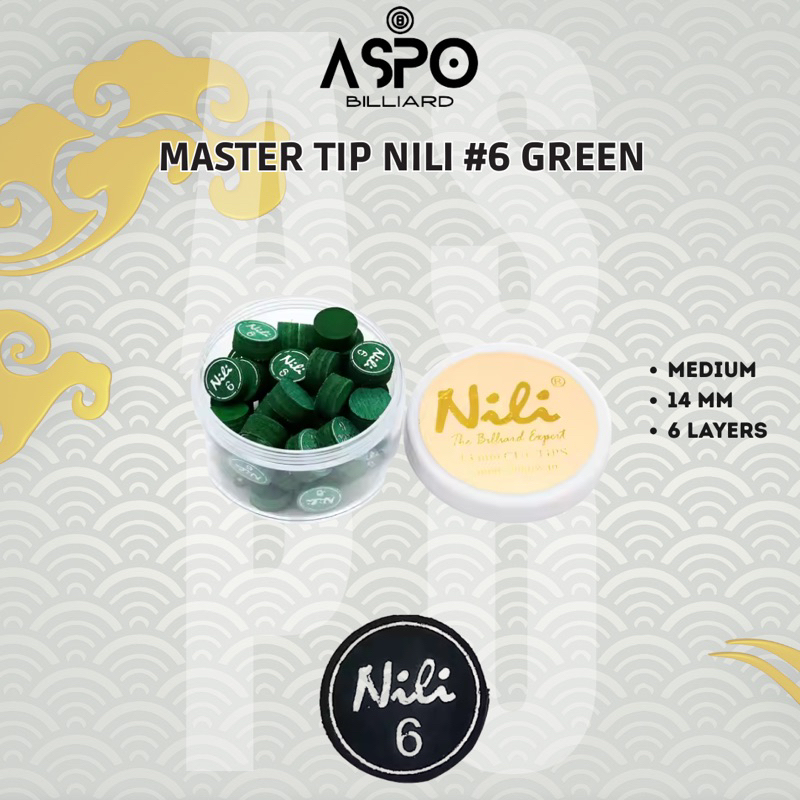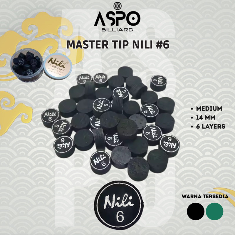 Master Tip Billiard Nili #6 Black & Green Play Cue Medium Cue Tip 14mm 14 mm
