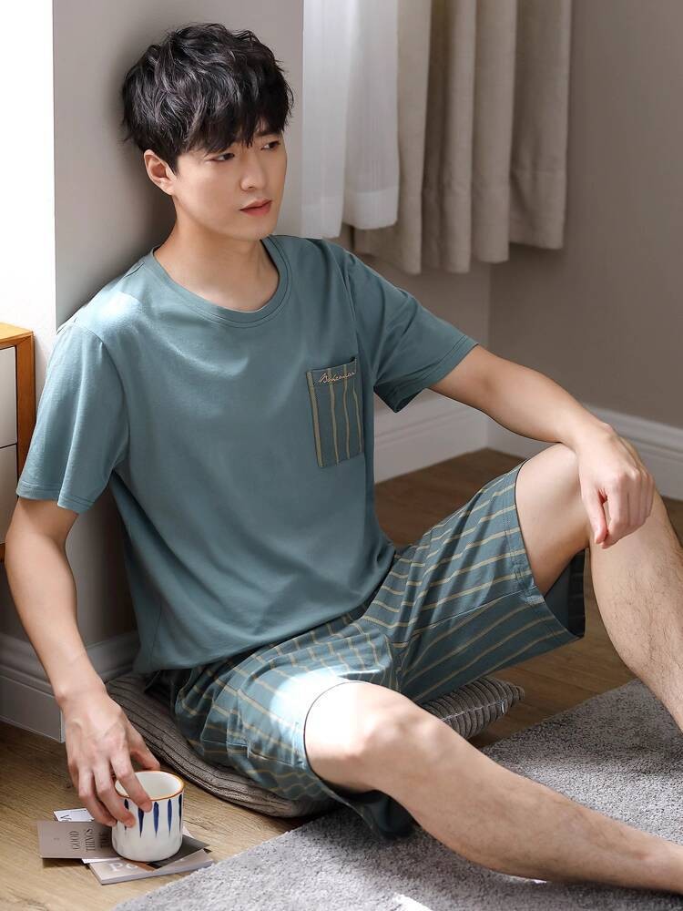Piyama Carrefen Katun Lengan Celana Pendek Pakaian Rumah Set Musim Panas Tipis Ukuran Besar Pria