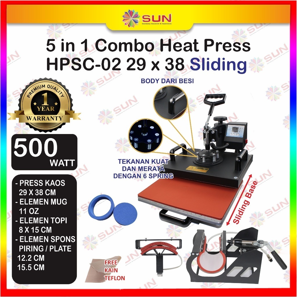 Mesin Press Kaos High Pressure 500 Watt 23X30/ 29X38 /38 X 38 Swing / Putar / Combo Untuk Sablon Kaos, Bag, Puzzle, Plat