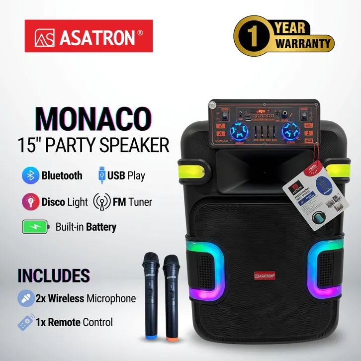 Asatron Crown Dual 10 Inch Bluetooth Party Speaker with 2 Wireless Mic