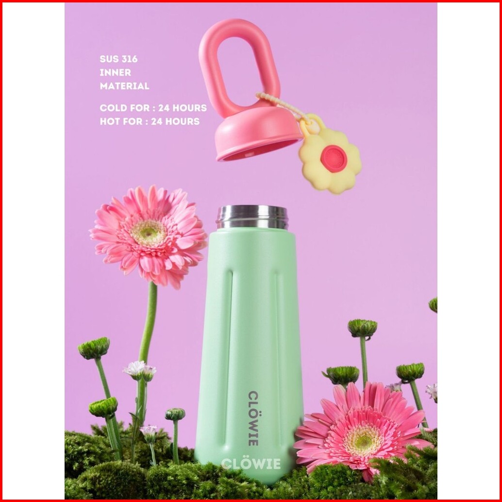 Cl Wie - Flowie Tumbler Stainless Botol Minum Aesthetic 420ml Tahan Panas Tahan Dingin