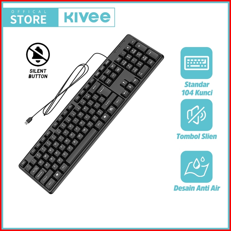 Kivee Keyboard Kabel Black 104 Keys Full Size Portable Durable For Pc Laptop Original