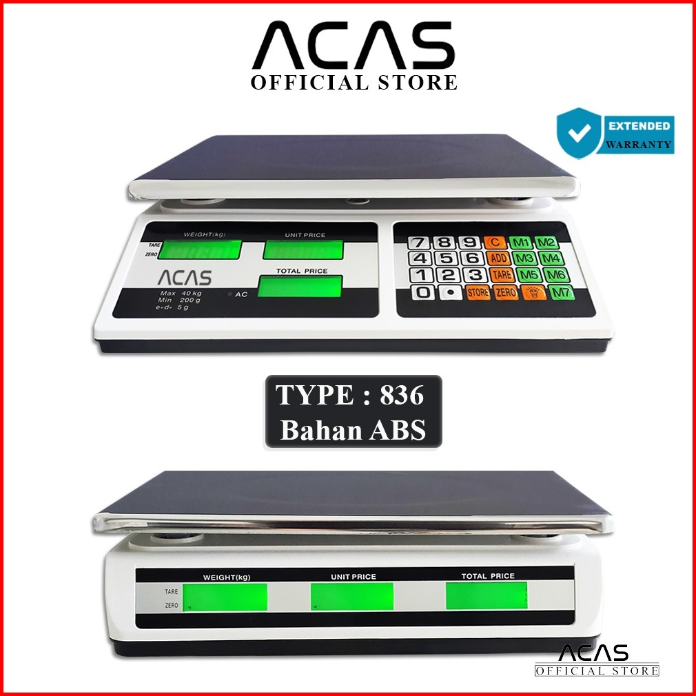 Acas 836 40kg 200gr Timbangan Duduk Digital Double Display Laundry Sayur Buah