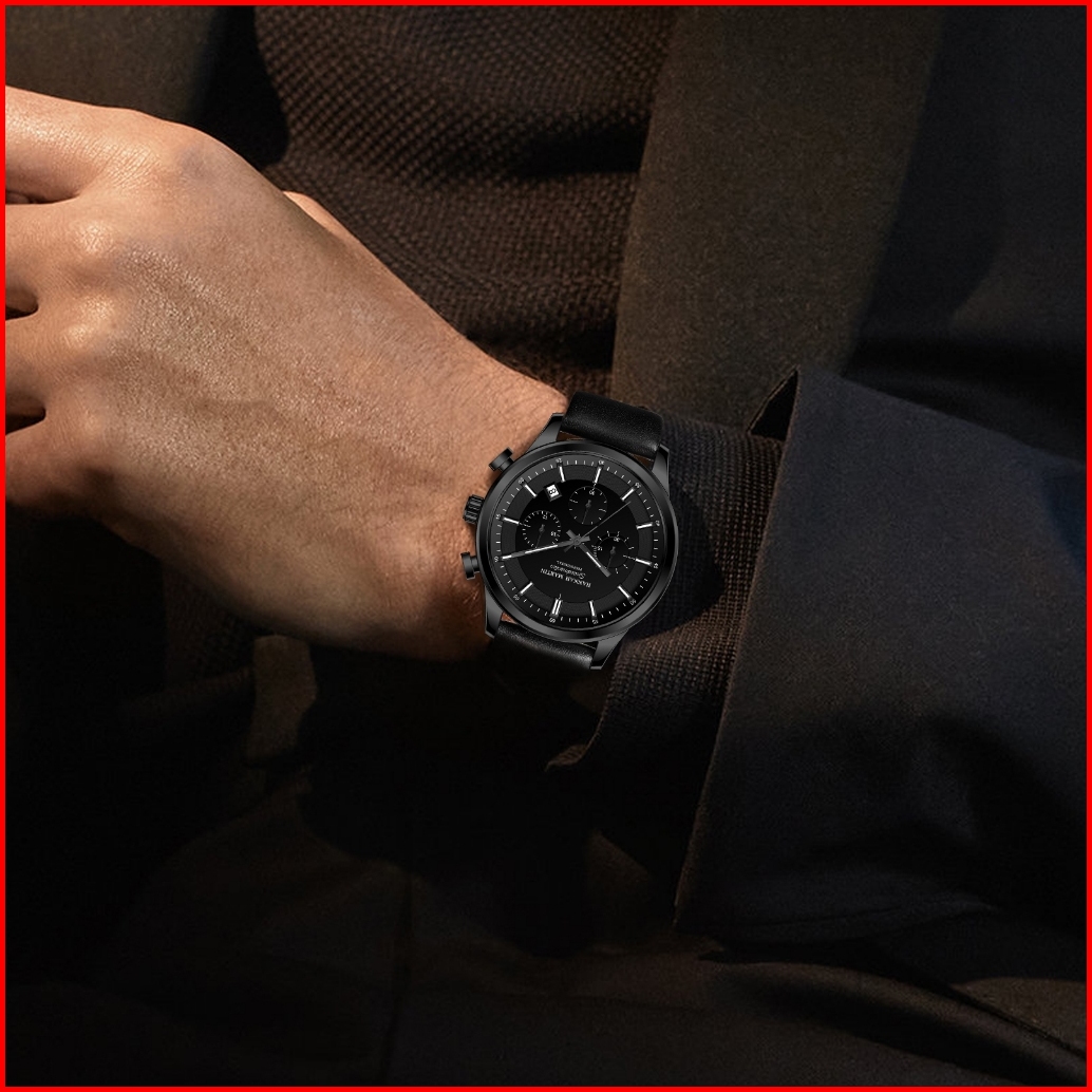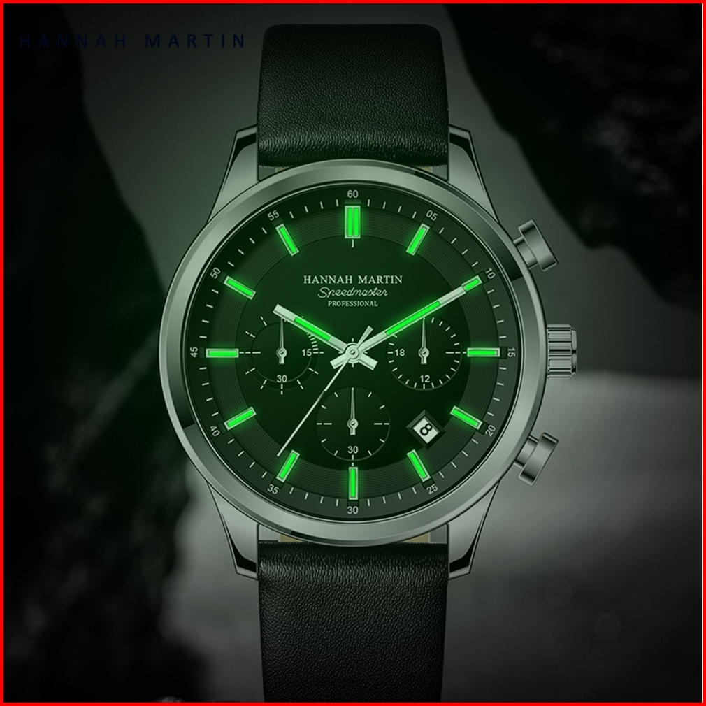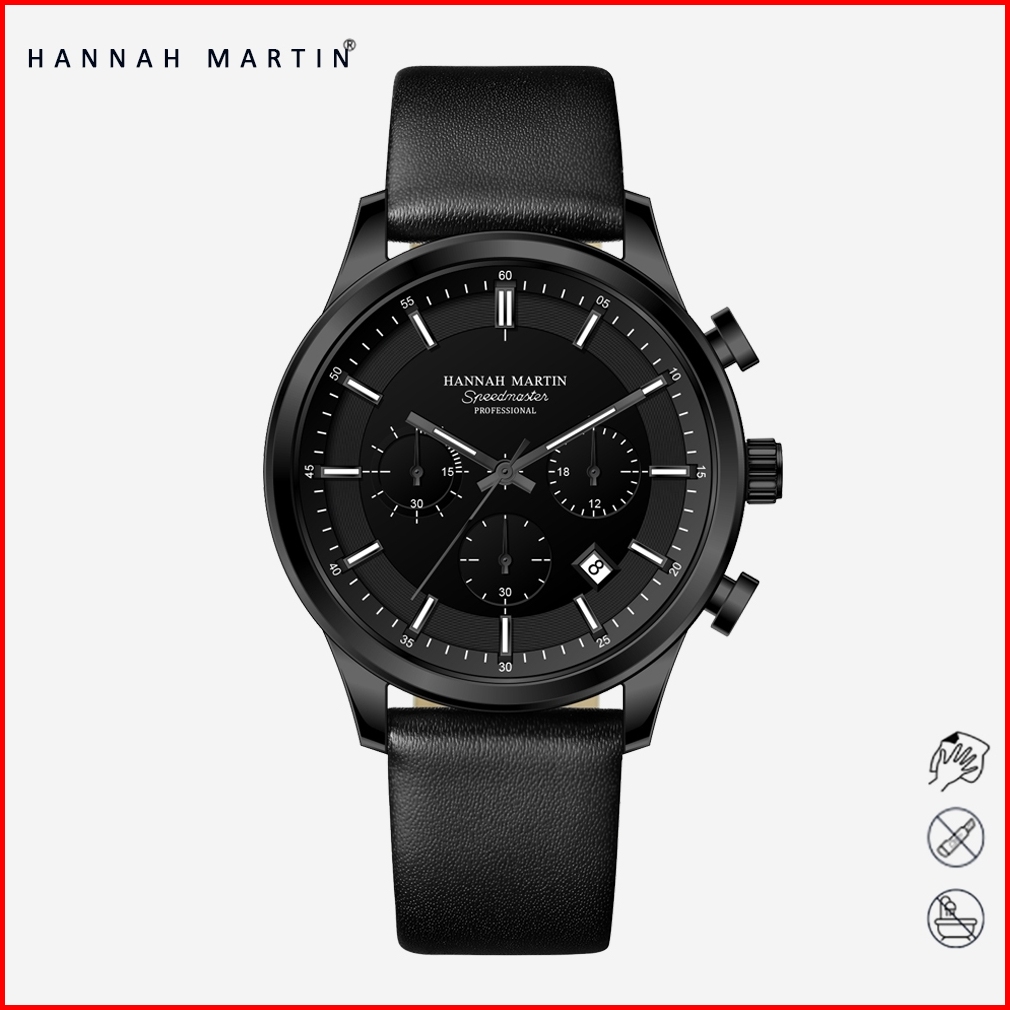 Hannah Martin Jam Tangan Pria 100 Original Kronograf Premium Hitam Kulit Tahan Air Quartz Analog Laki Jam Cowok Anti Air