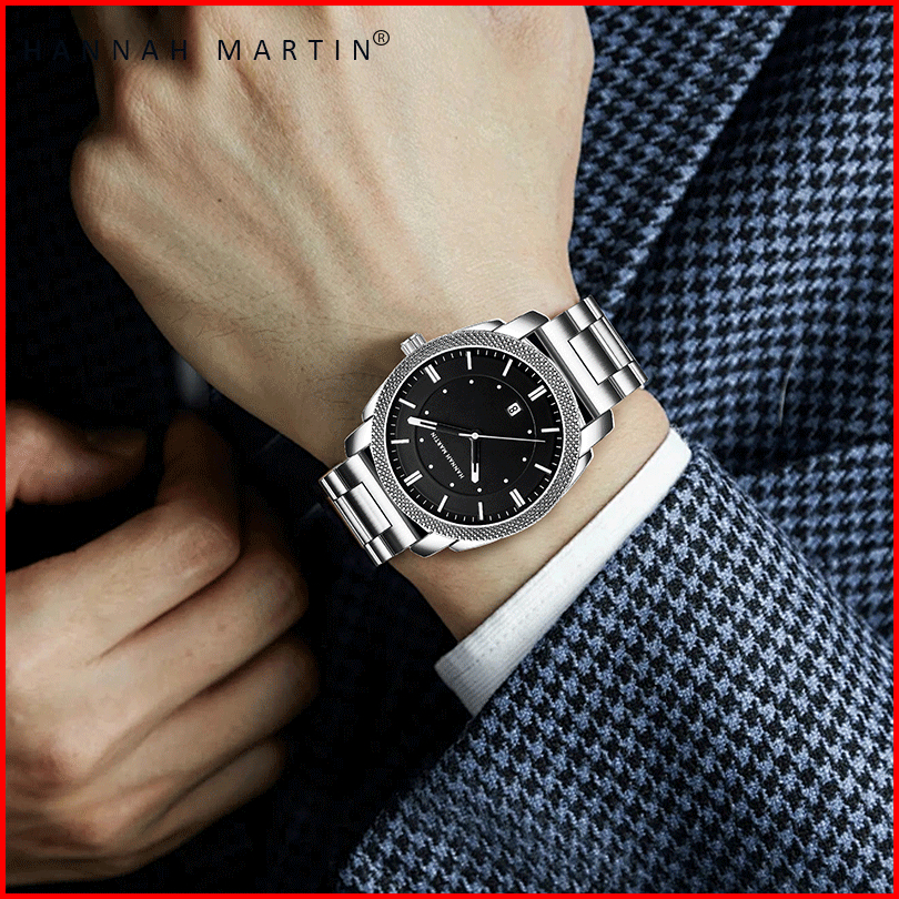 Hannah Martin Jam Tangan Pria 100 Original Premium Tahan Air Cowok Mewah Quartz Analog Laki Stainless Steel 1451