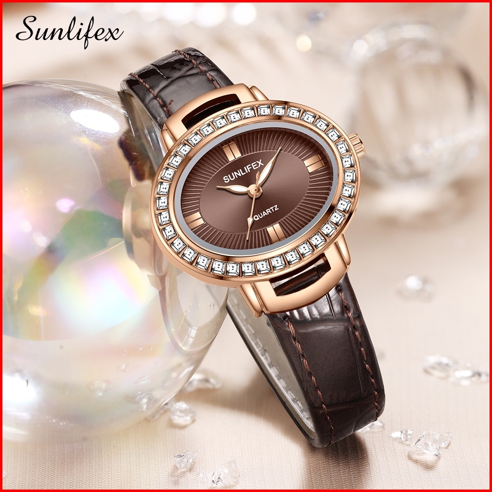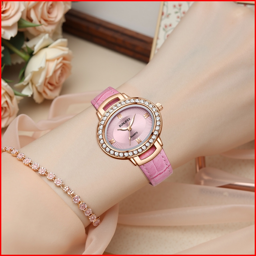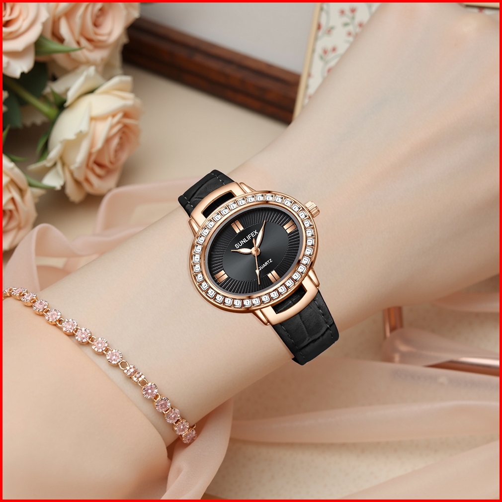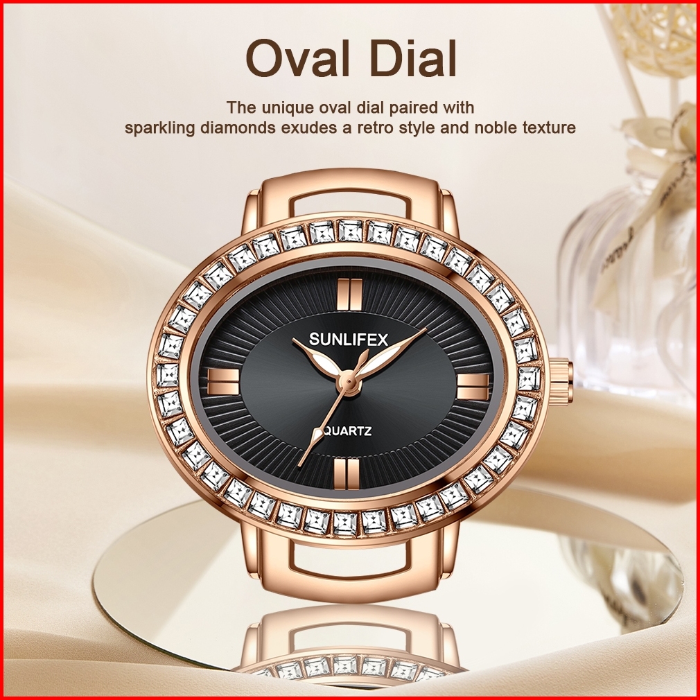 Sunlifex Jam Tangan Wanita Original Korea Kuarsa Antik Tali Kulit Kasual Oval Jam Tangan Cewek E052