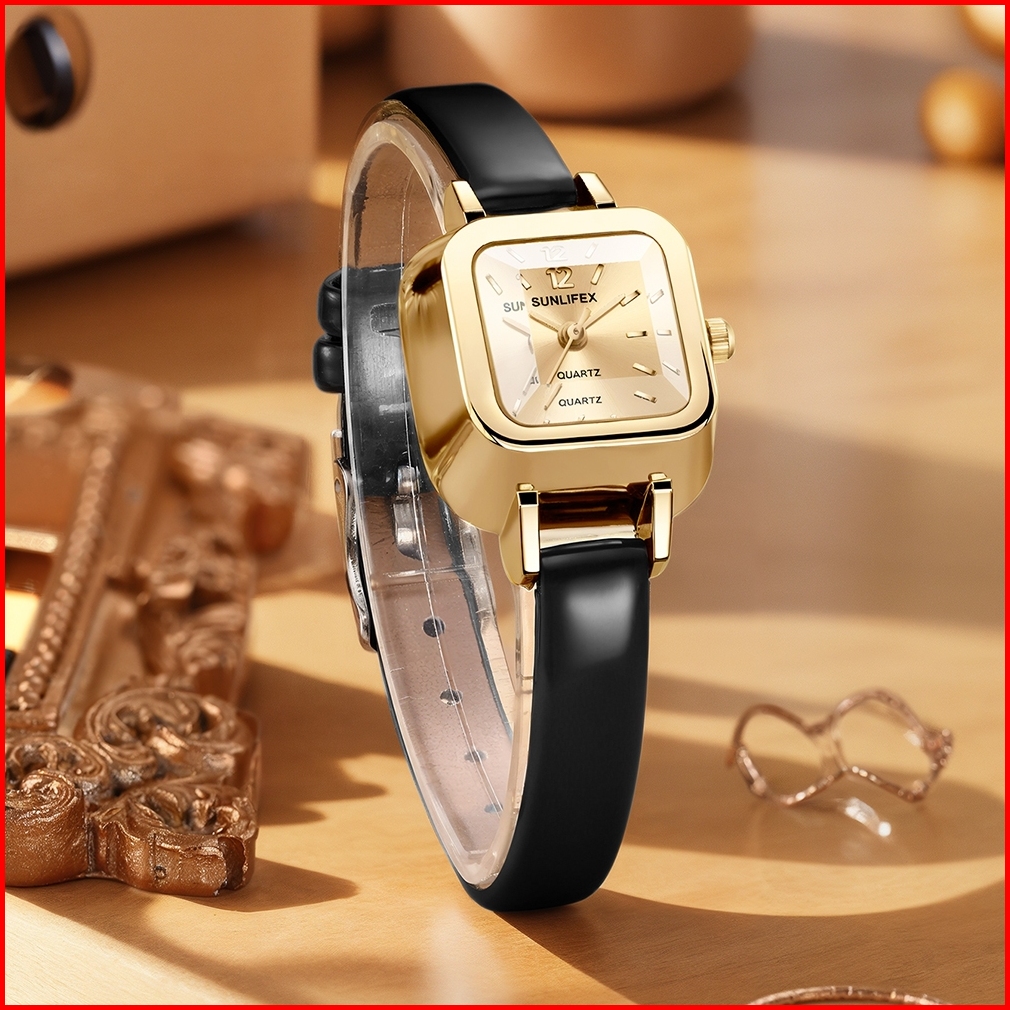 Sunlifex Jam Tangan Wanita 3344 Korea Antik Persegi Mini Tali Kulit Jam Tangan Cewek Original