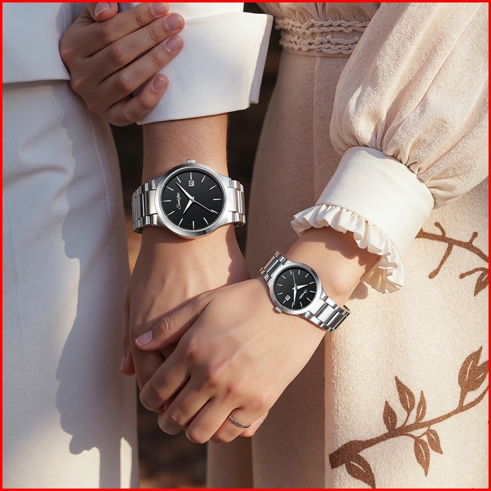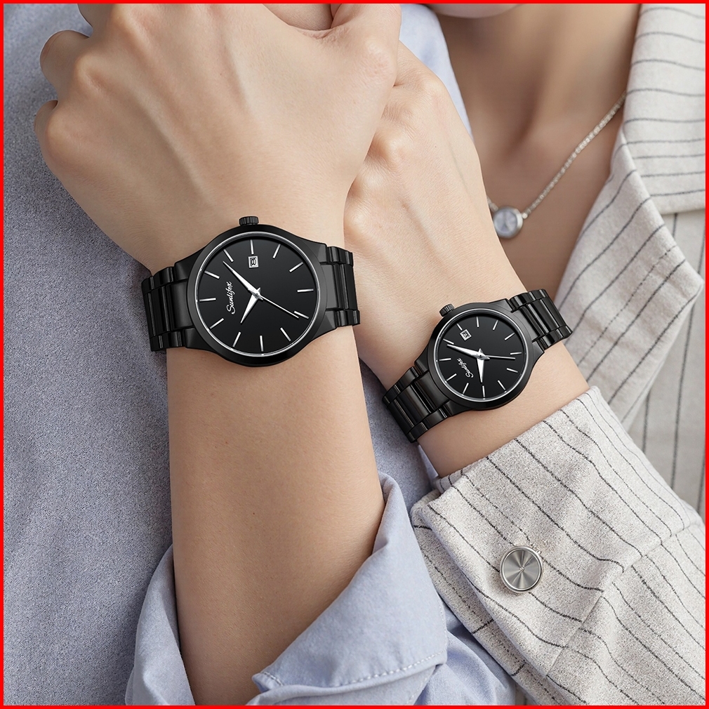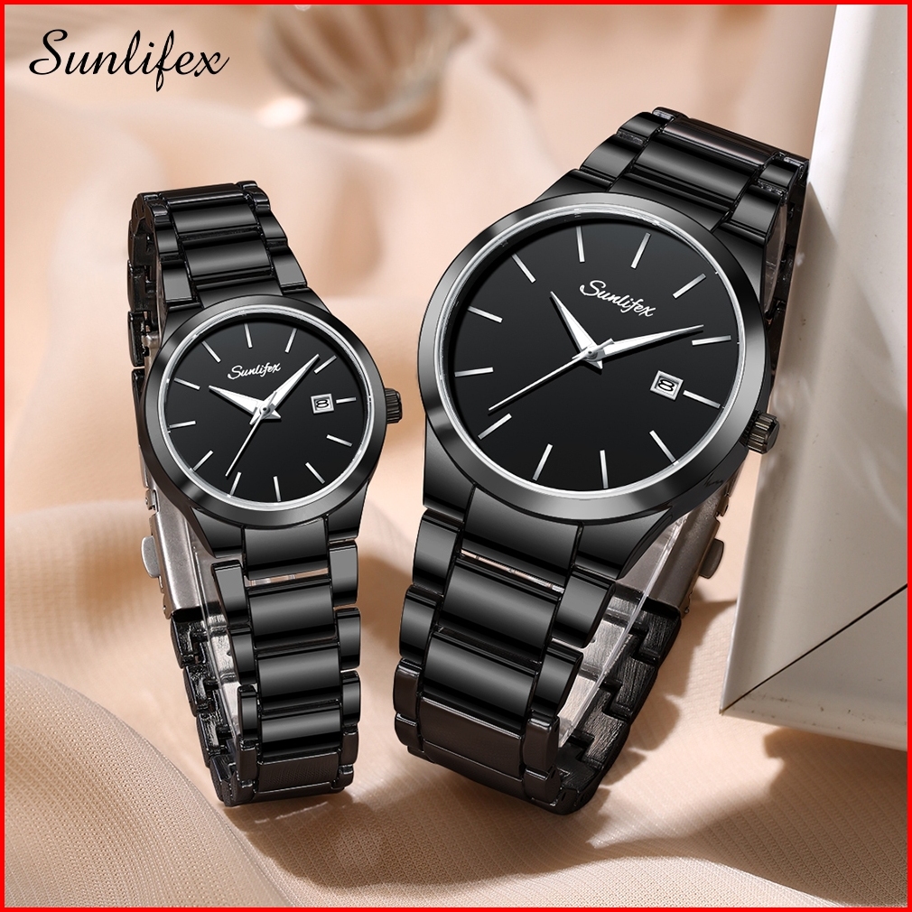 Sunlifex Jam Tangan Couple Original Tanggal Luminous Santai Tali Stainless Steel Jam Tangan Pria Wanita
