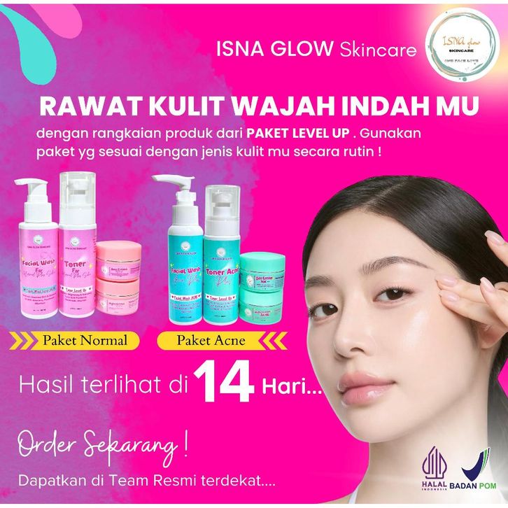 ISNA GLOW SKINCARE PAKET LEVEL UP PAKET NORMAL & PAKET ACNE ISNAGLOW 6X LEBIH CEPAT MENCERAHKAN