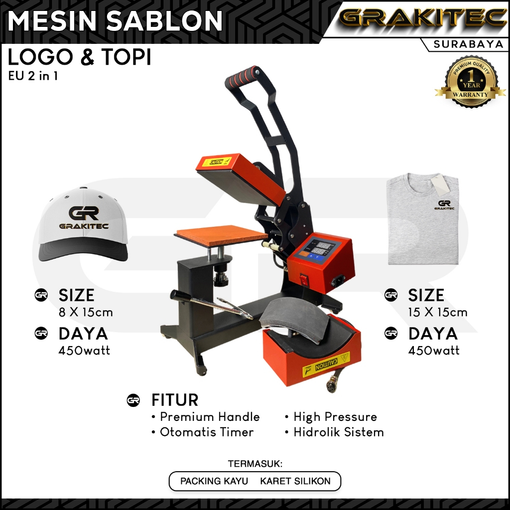 Mesin Press Sablon Mini Logo Label 15X15 Cm & Press Sablon Topi Premium - 2 In 1 Cap & Logo Heat Press Untuk Press Kaos,